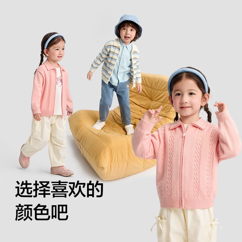 巴拉巴拉balaOne宝宝毛衣男童女童绞花开衫外套2025新款秋装百搭