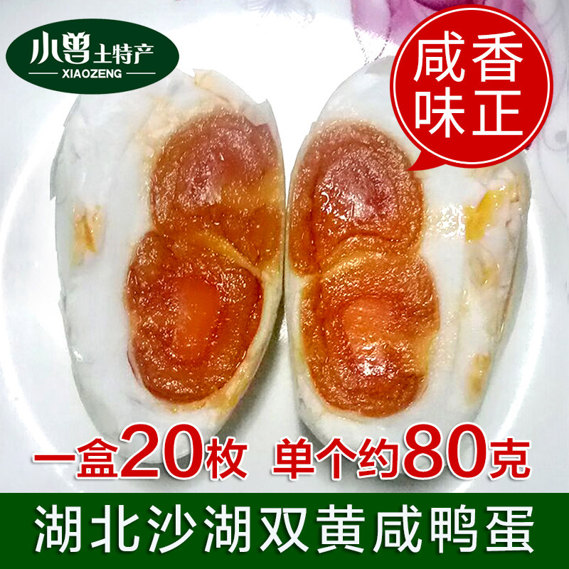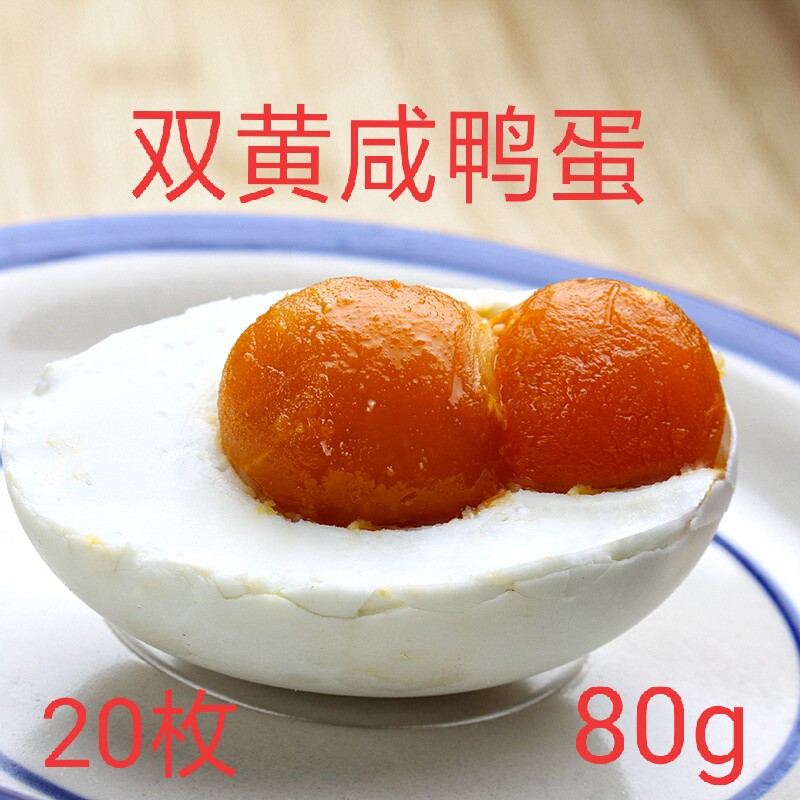湖北沙湖农家散养双黄咸鸭蛋不太咸咸鸭蛋熟双黄蛋麻鸭蛋20枚包邮