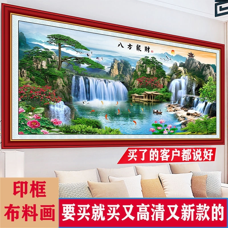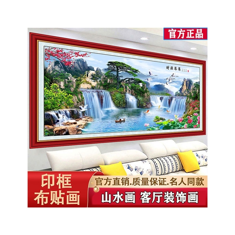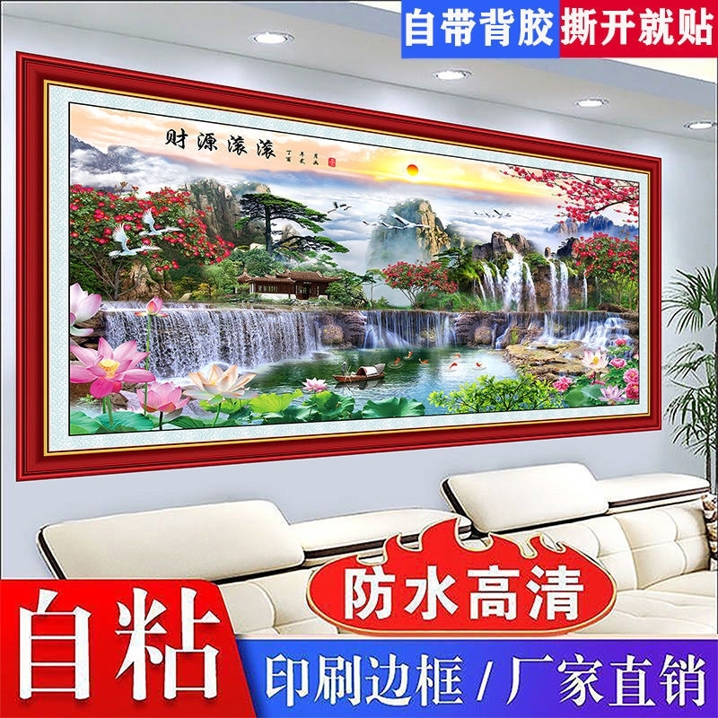 鸿运当头山水画客厅风水装饰画3D沙发背景墙贴画自粘画镇宅画壁画