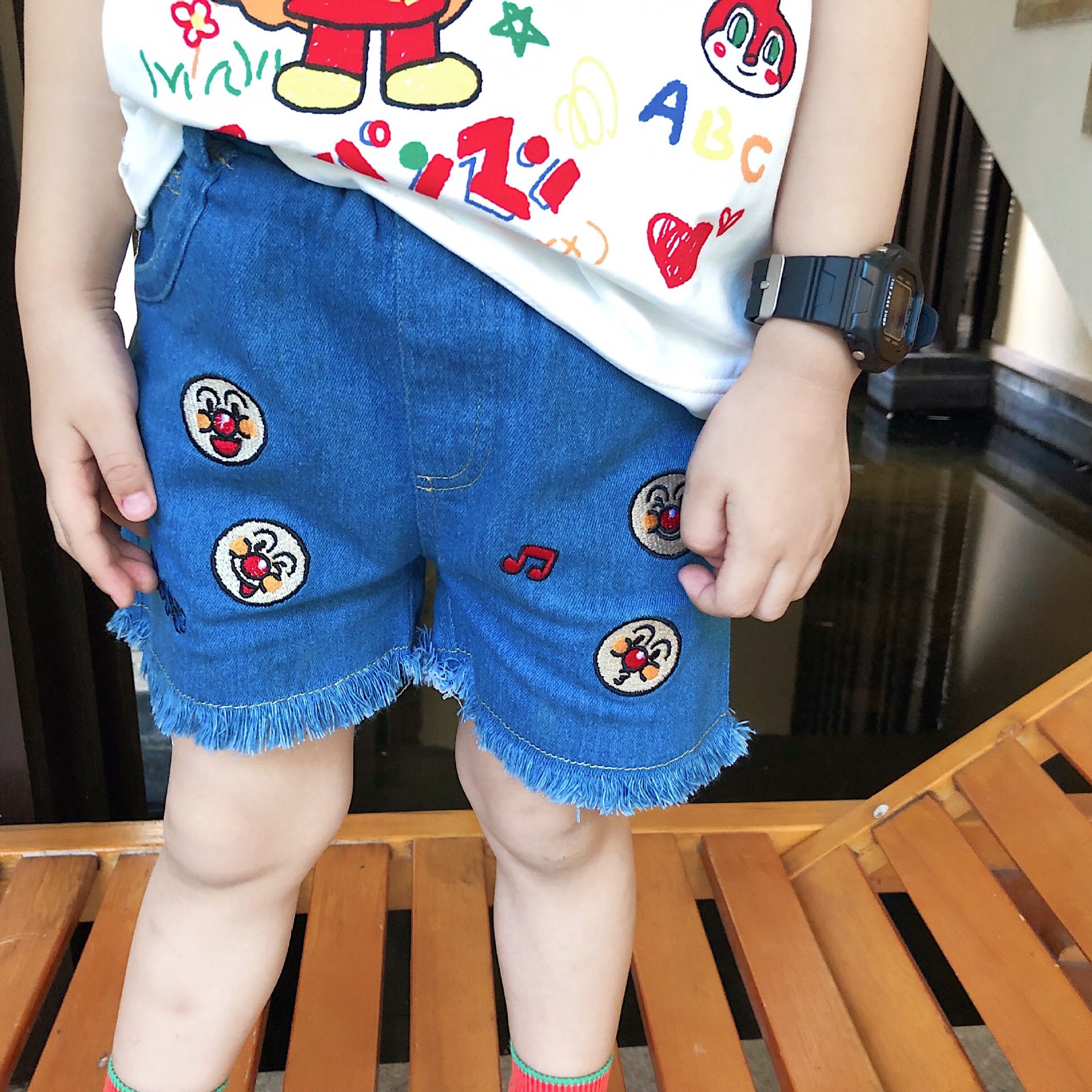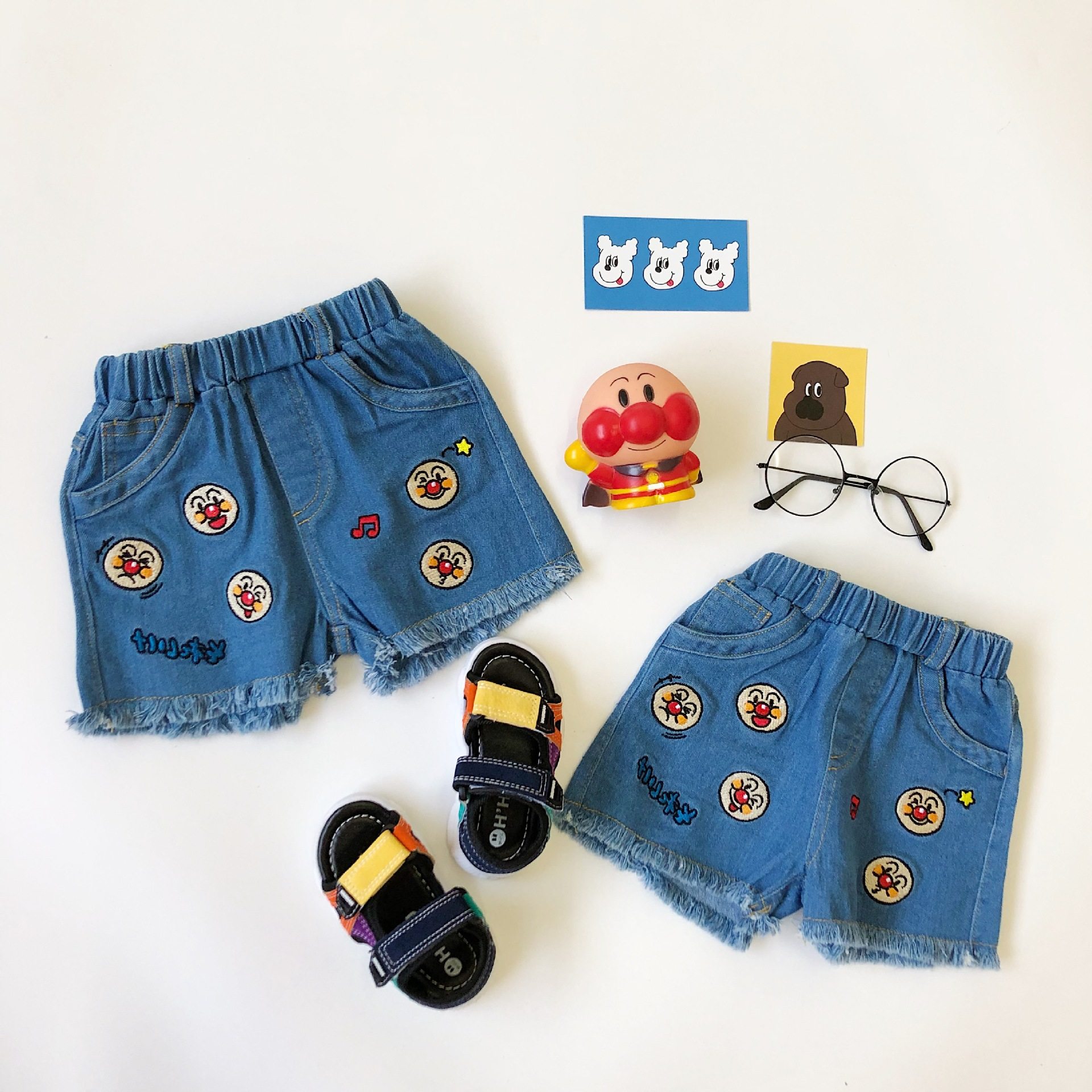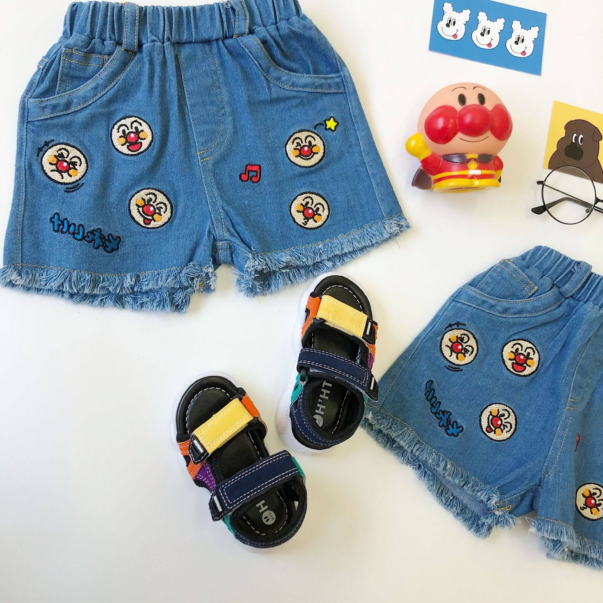 天使家童装 新款 可爱儿童夏季柔软牛仔裤卡通男女童宝宝短裤