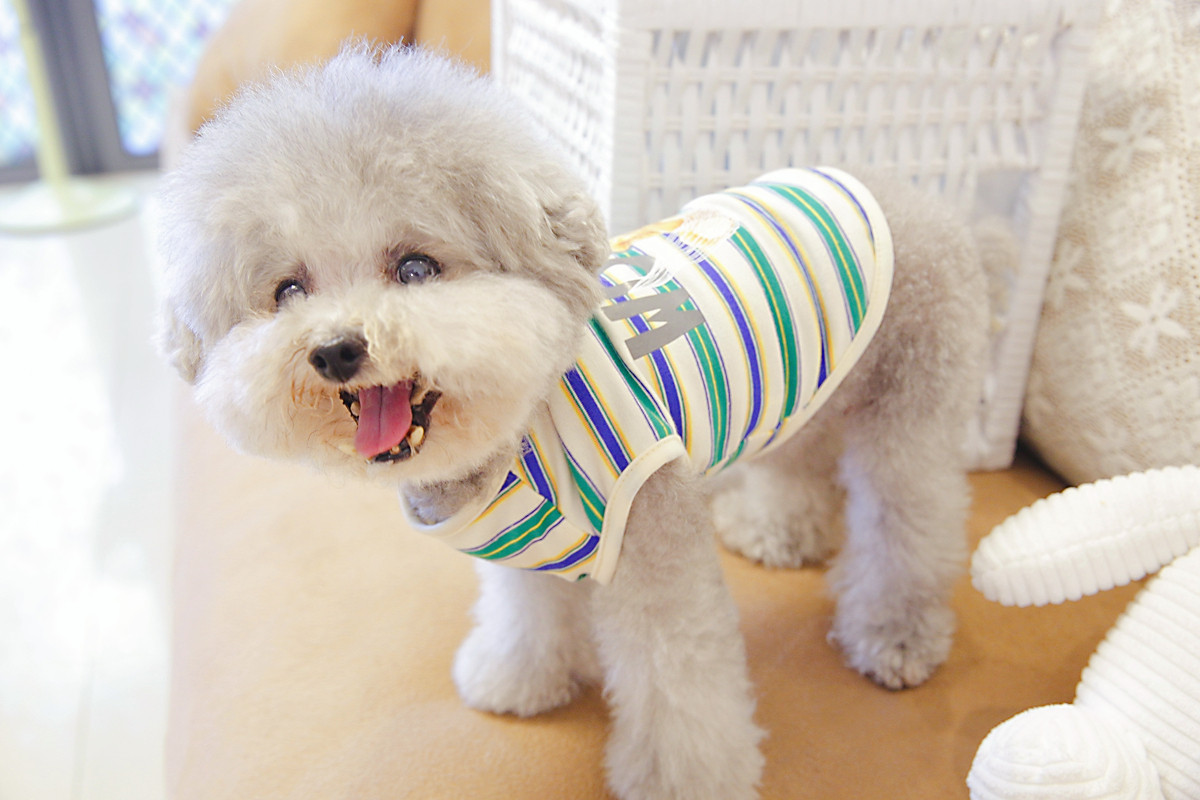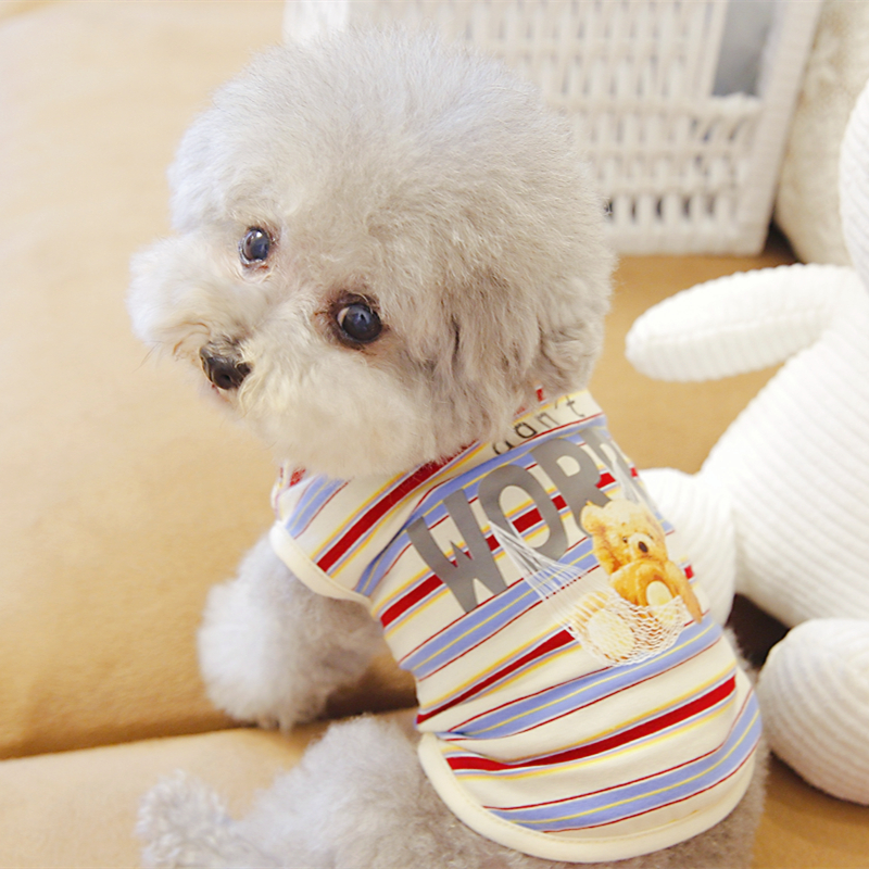 宠物猫咪比熊小型犬泰迪狗狗衣服秋冬装春夏装薄款背心多彩条纹熊