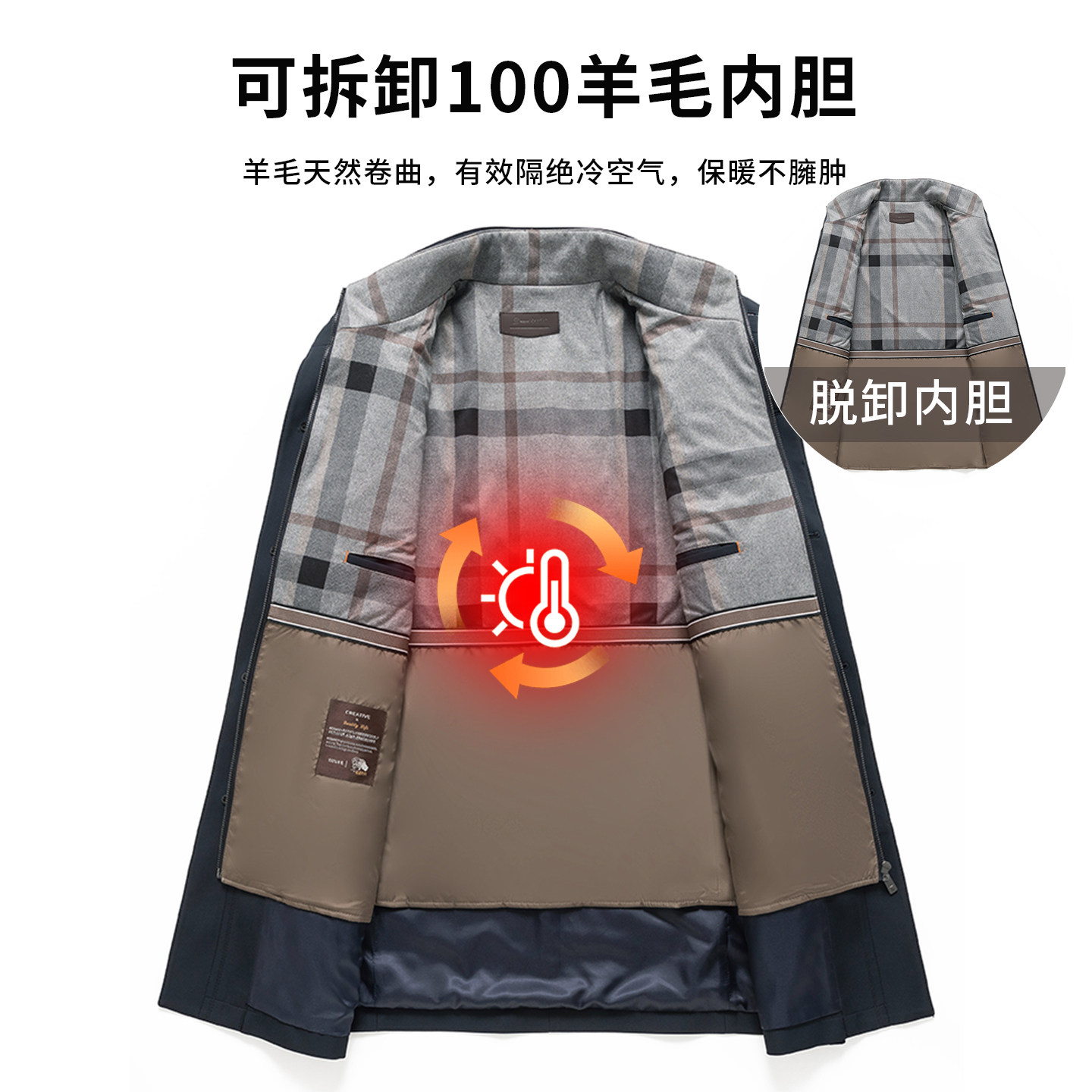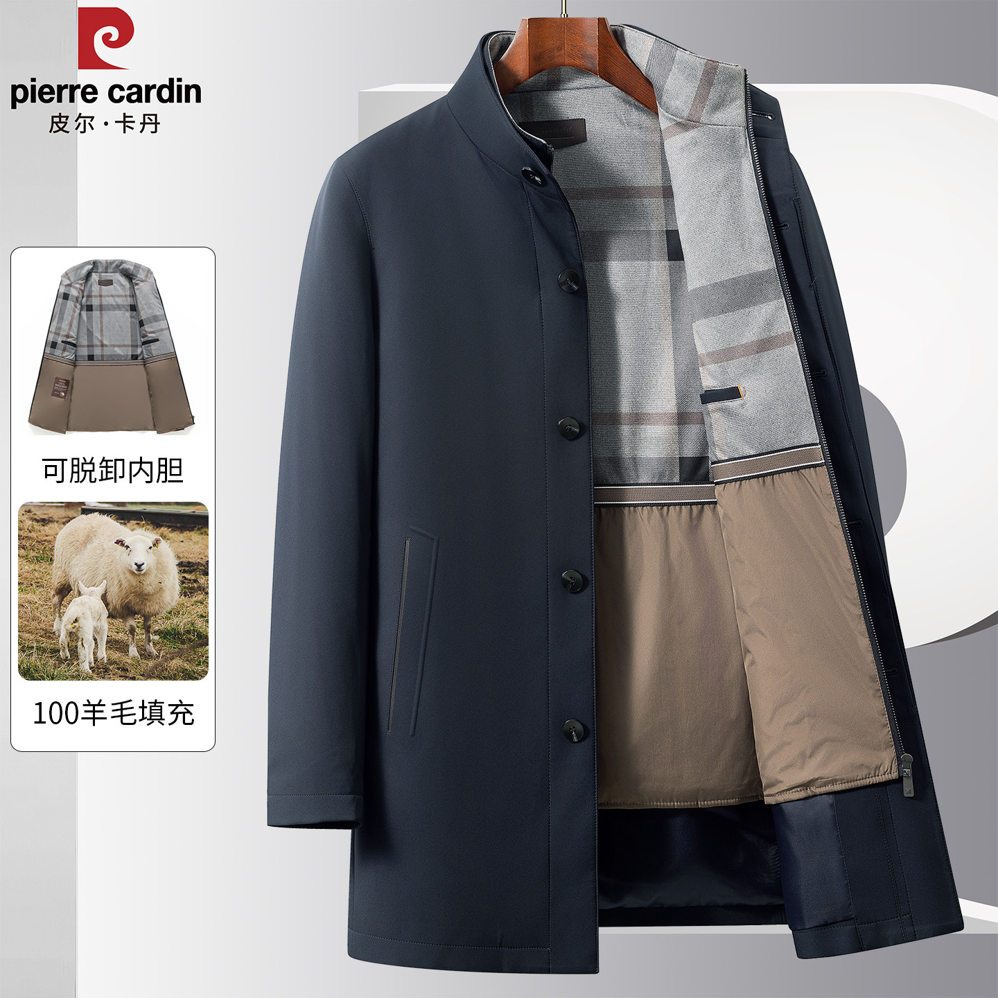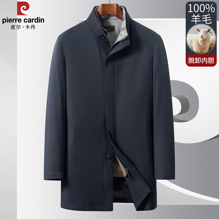 皮尔卡丹风衣外套男中老年可脱卸羊毛内胆中长款冬加厚高级感大衣