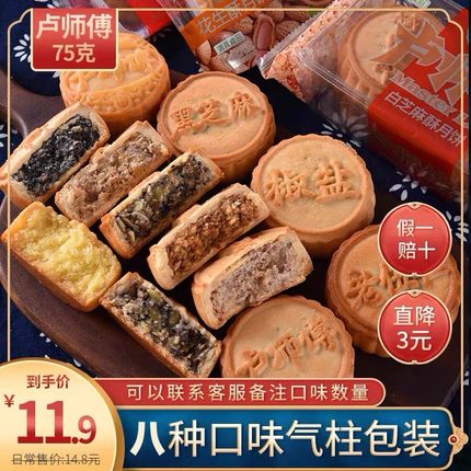卢师傅月饼75g中秋礼盒装椰蓉广式苏式五仁花生酥椒盐黑芝麻散装