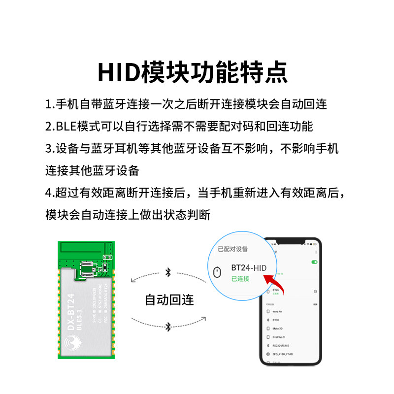 大夏龙雀自动回连BT24HID蓝牙模块兼容Arduin无线串口数据透传输