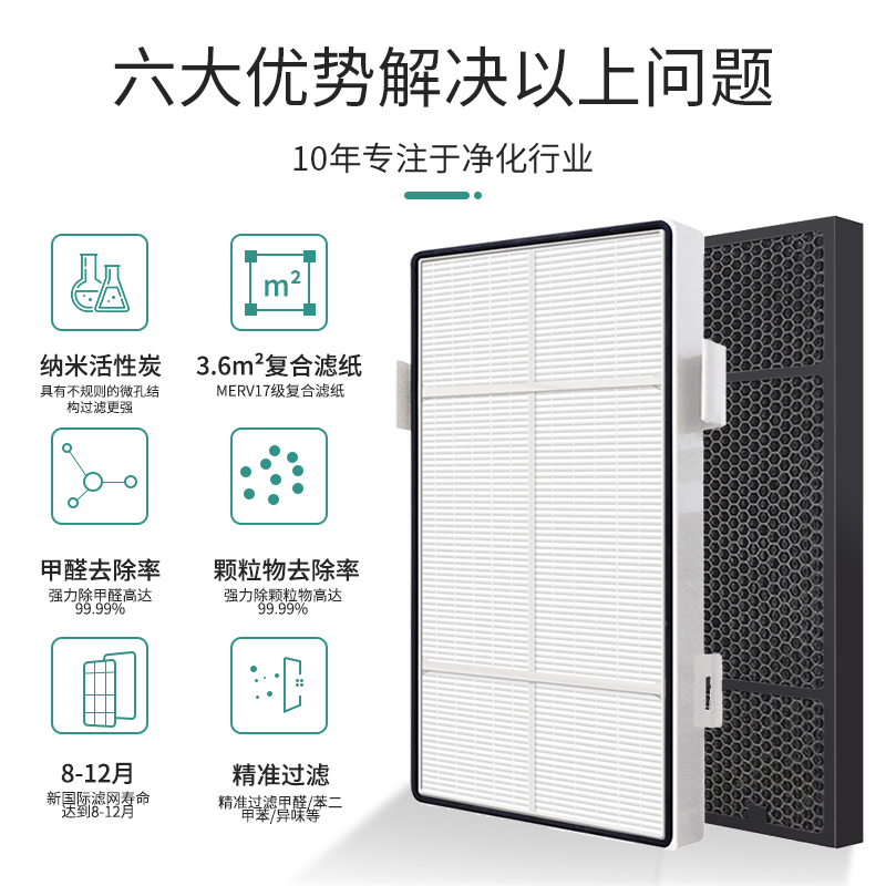 适配逸新安利空气净化器过滤网第2层微粒hepa第3层活性炭除醛滤芯
