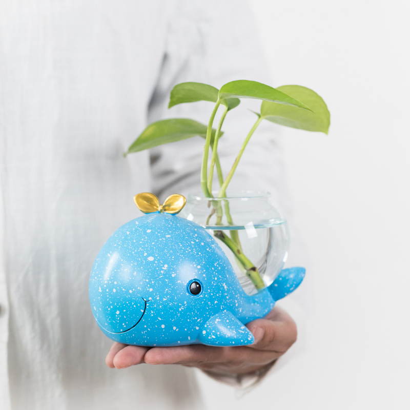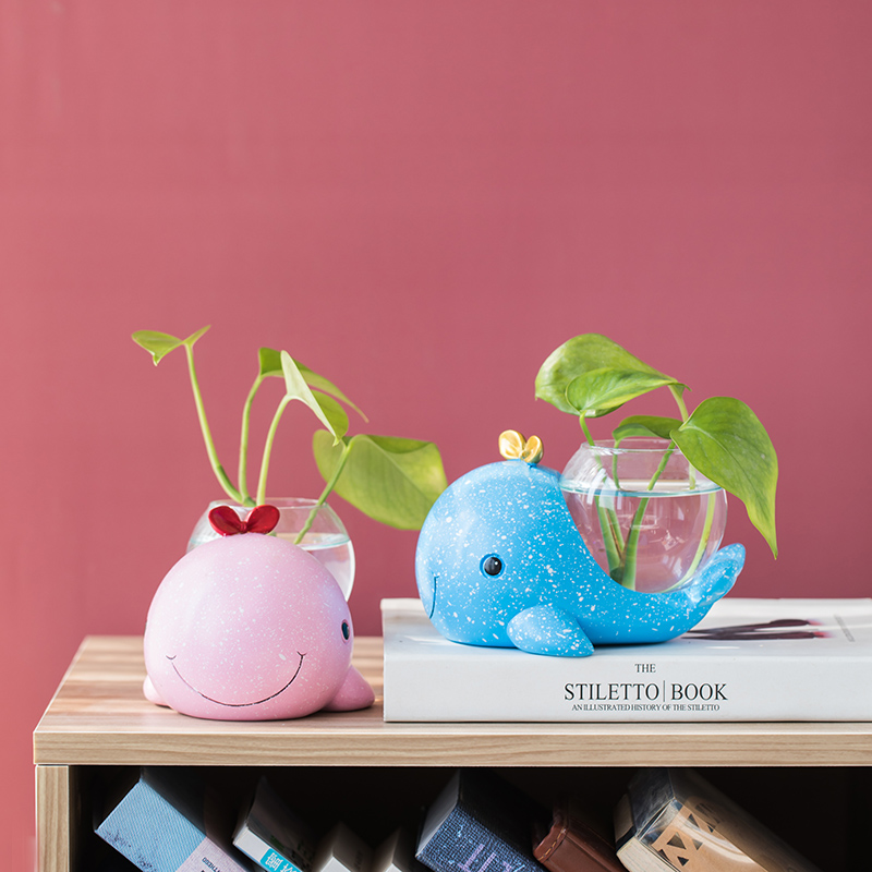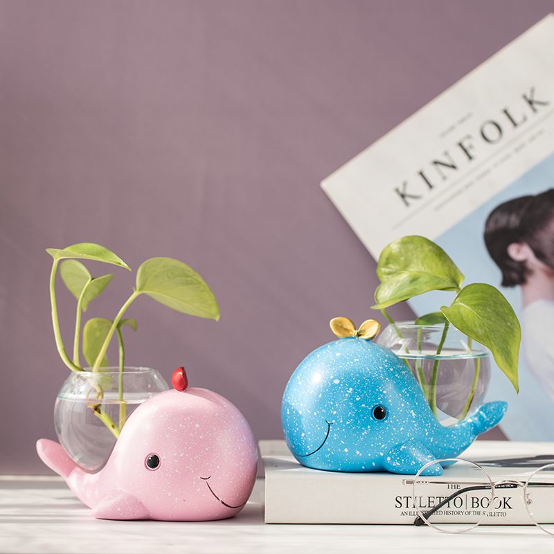 创意小鲸鱼绿萝水培花盆器皿透明玻璃插花花瓶水养植物客厅装饰品