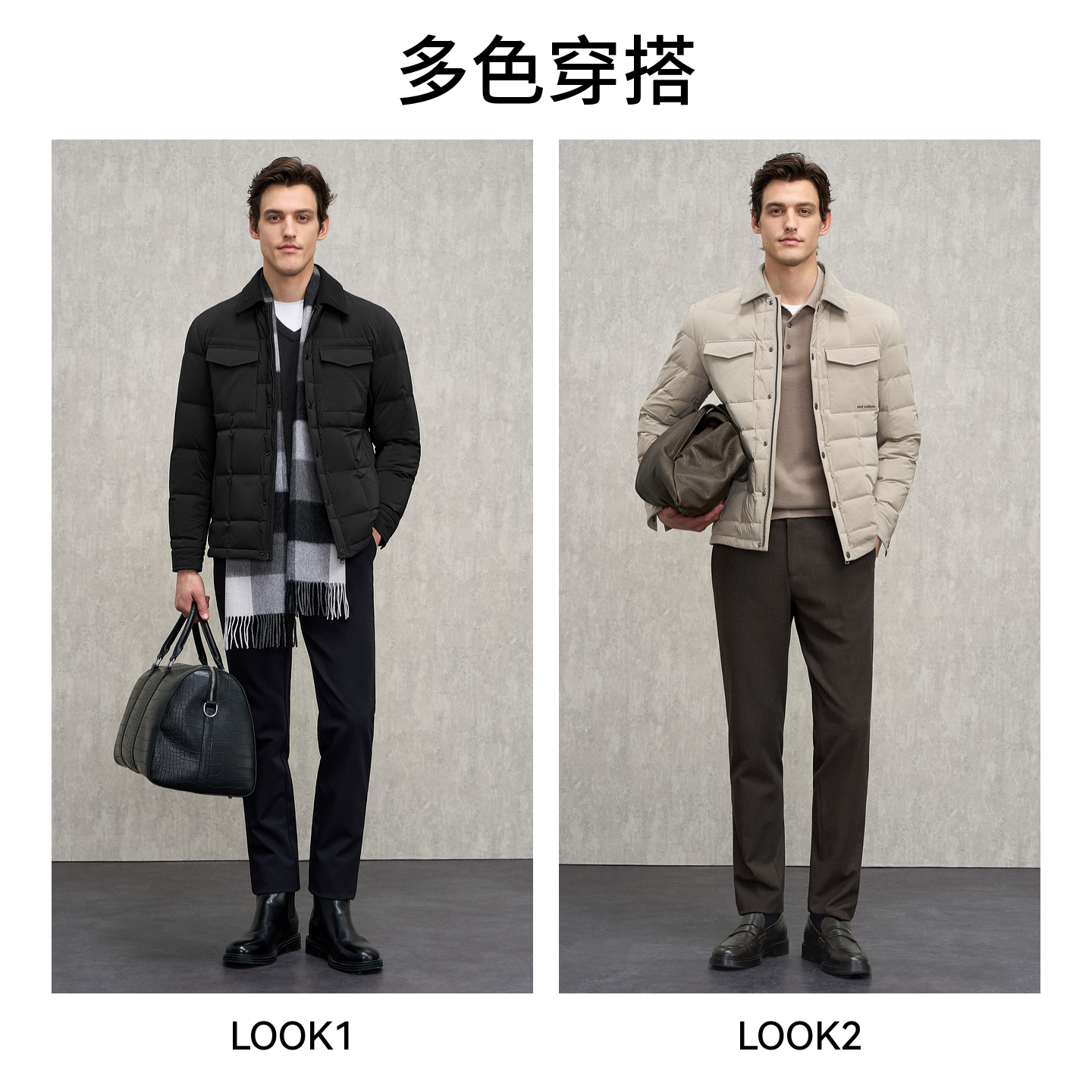 【白鹅绒】EMZ鄂尔多斯冬季新款保暖休闲翻领衬衫轻羽绒服外套男