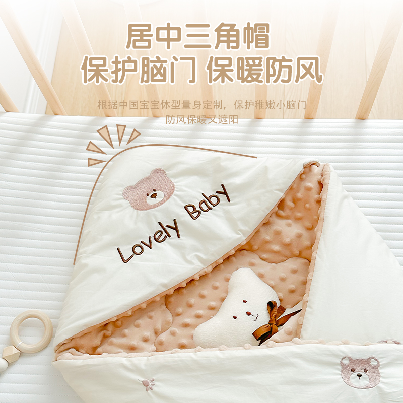 新生婴儿包被纯棉秋冬加厚豆豆棉花抱被初生宝宝产房襁褓四季通用