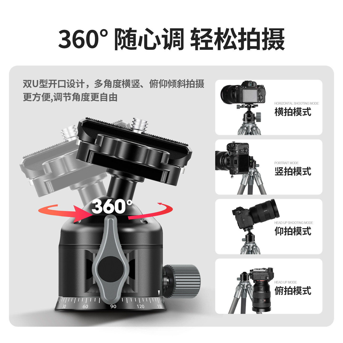 曼比利Q28横竖拍超轻相机球形云台迷你单反便携摄影拍摄阻尼全景金属小云台三脚架A888独脚架球型阿卡云台