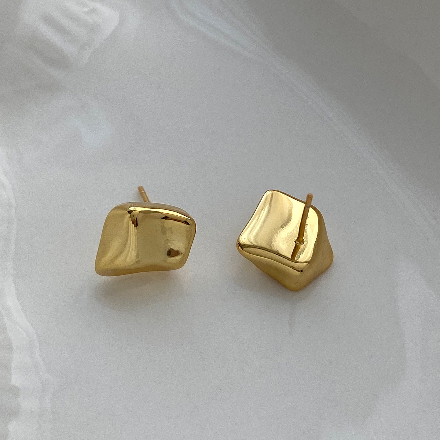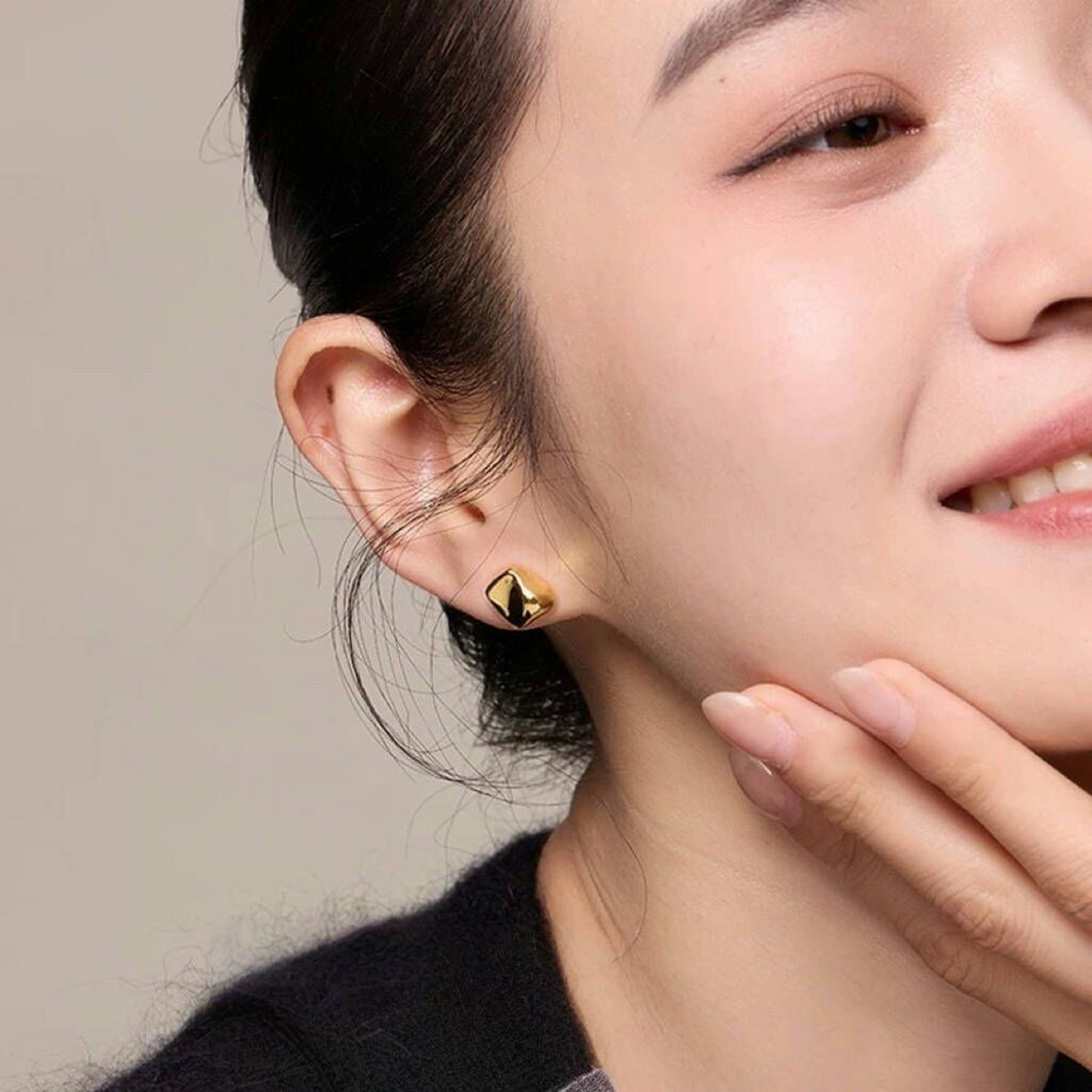 不对称小陨石耳钉同期百搭925银针耳饰不规则小众设计感2025新款