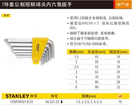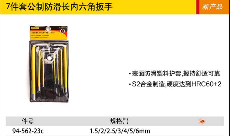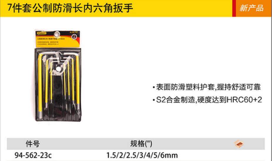 史丹利公制防滑长内六角扳手组套1.5-8mm 7件套 94-529-23
