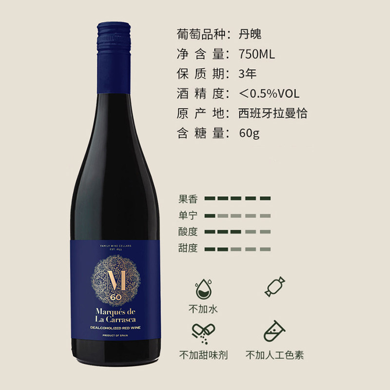 开车也能喝 洛萨诺玛卡原瓶进口丹魄脱醇去酒精半甜葡萄酒汁M60