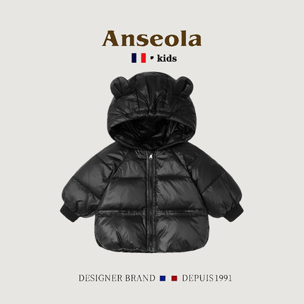 法国ANSEOLA婴儿羽绒服男童外套冬装儿童女宝宝洋气连帽保暖衣潮