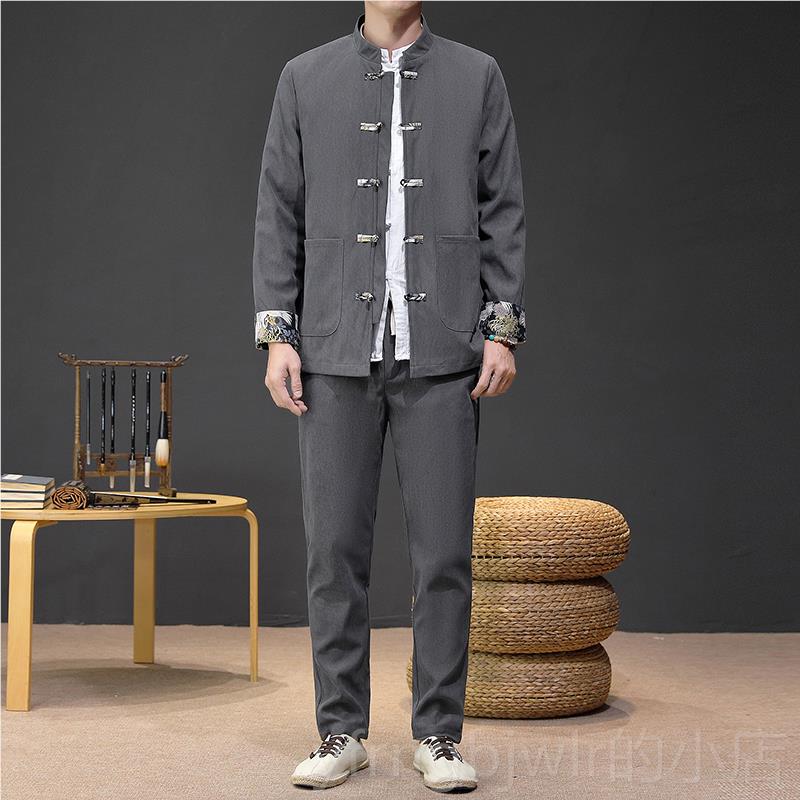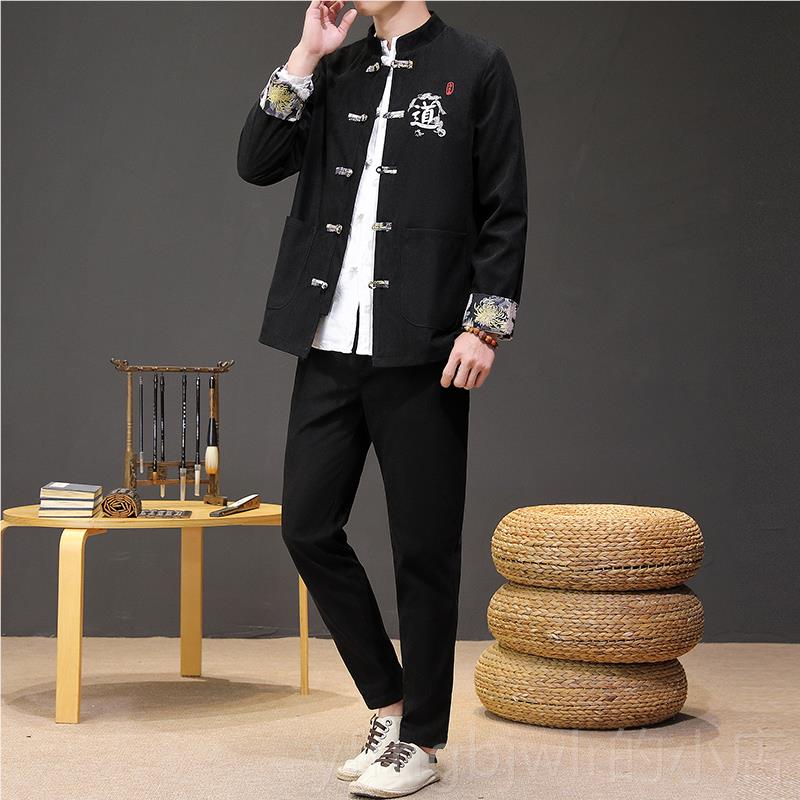 新款服唐装套装青中国风男装装中式汉服居士古装年民族风禅春秋中