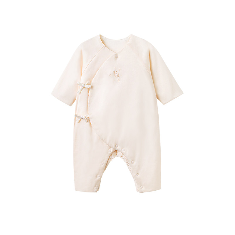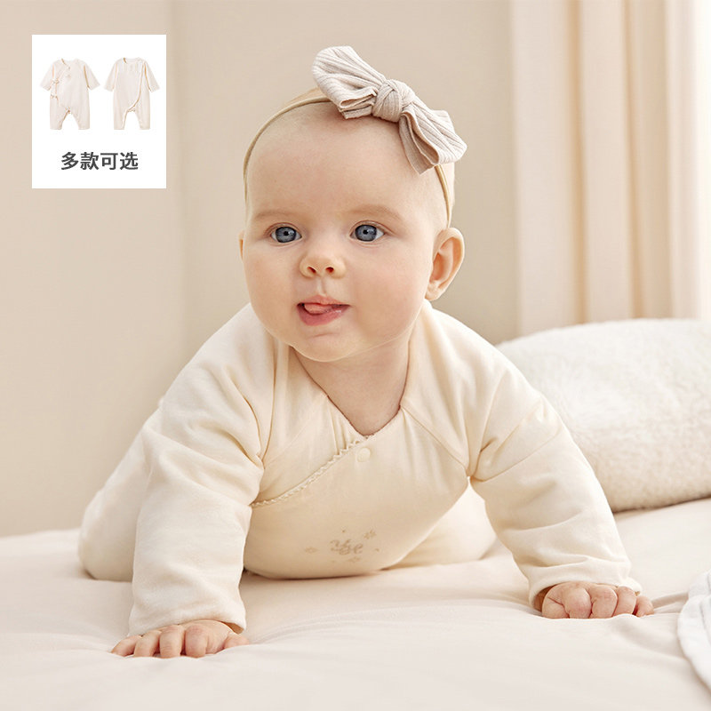 英氏婴儿衣服新生儿哈衣秋冬季蚕丝纯棉轻薄保暖连体衣