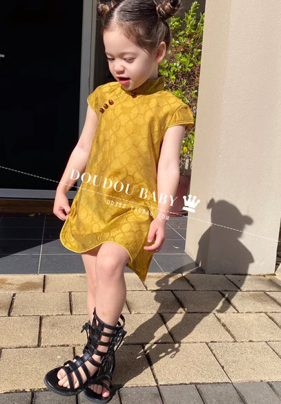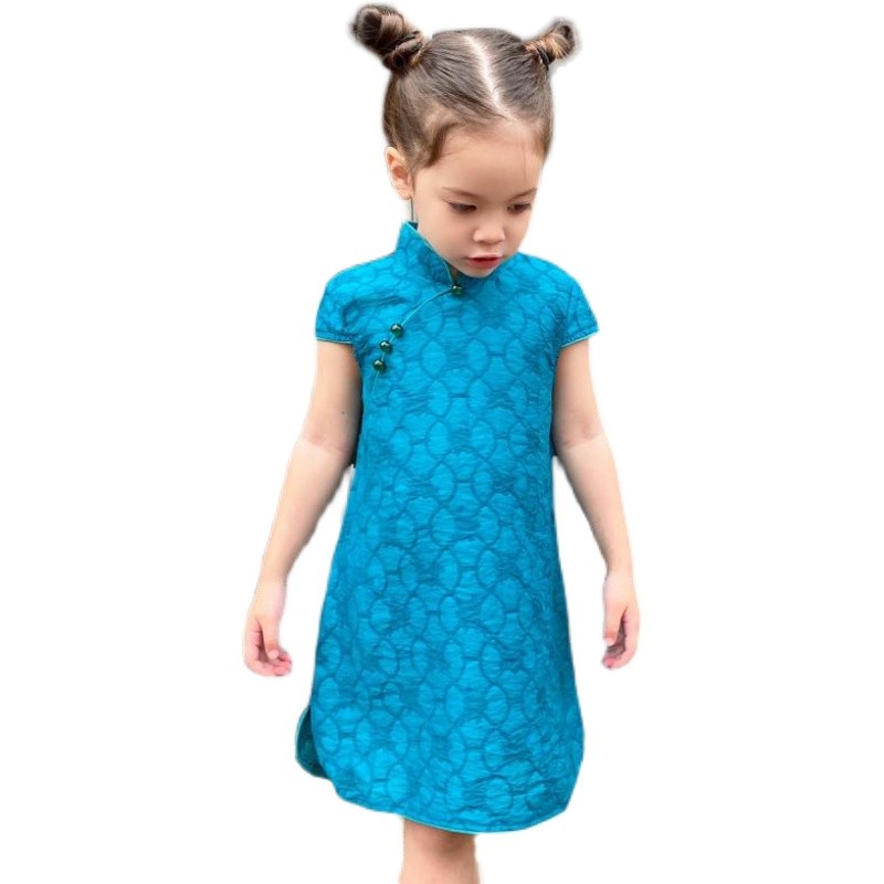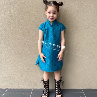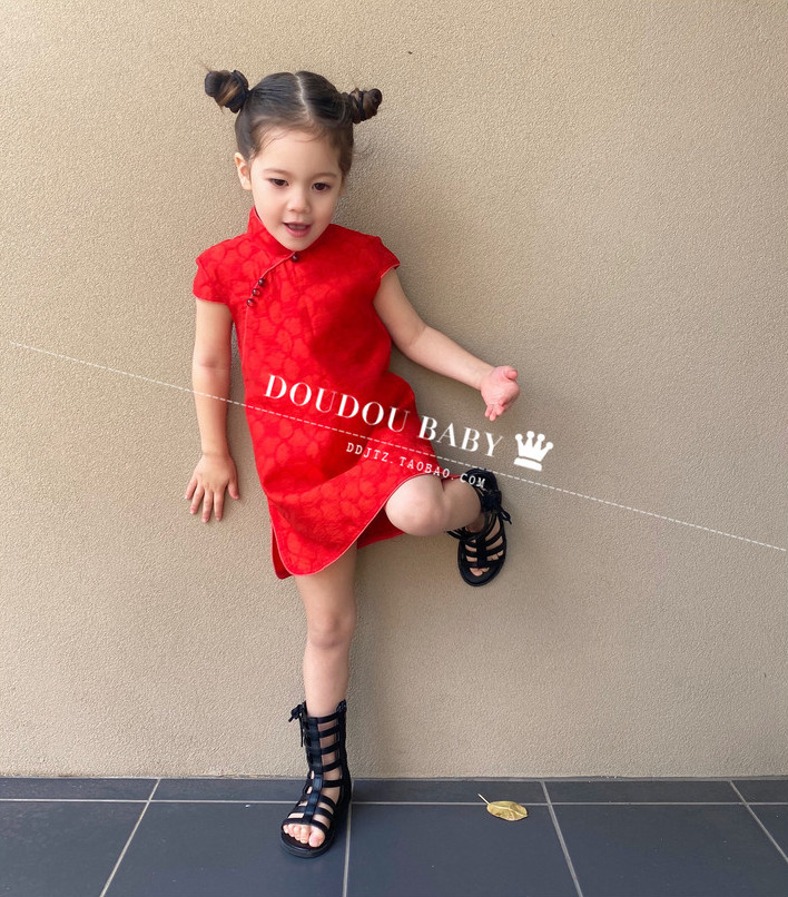 女童旗袍连衣裙夏季红色中国风儿童旗袍宝宝周岁生日走秀表演服