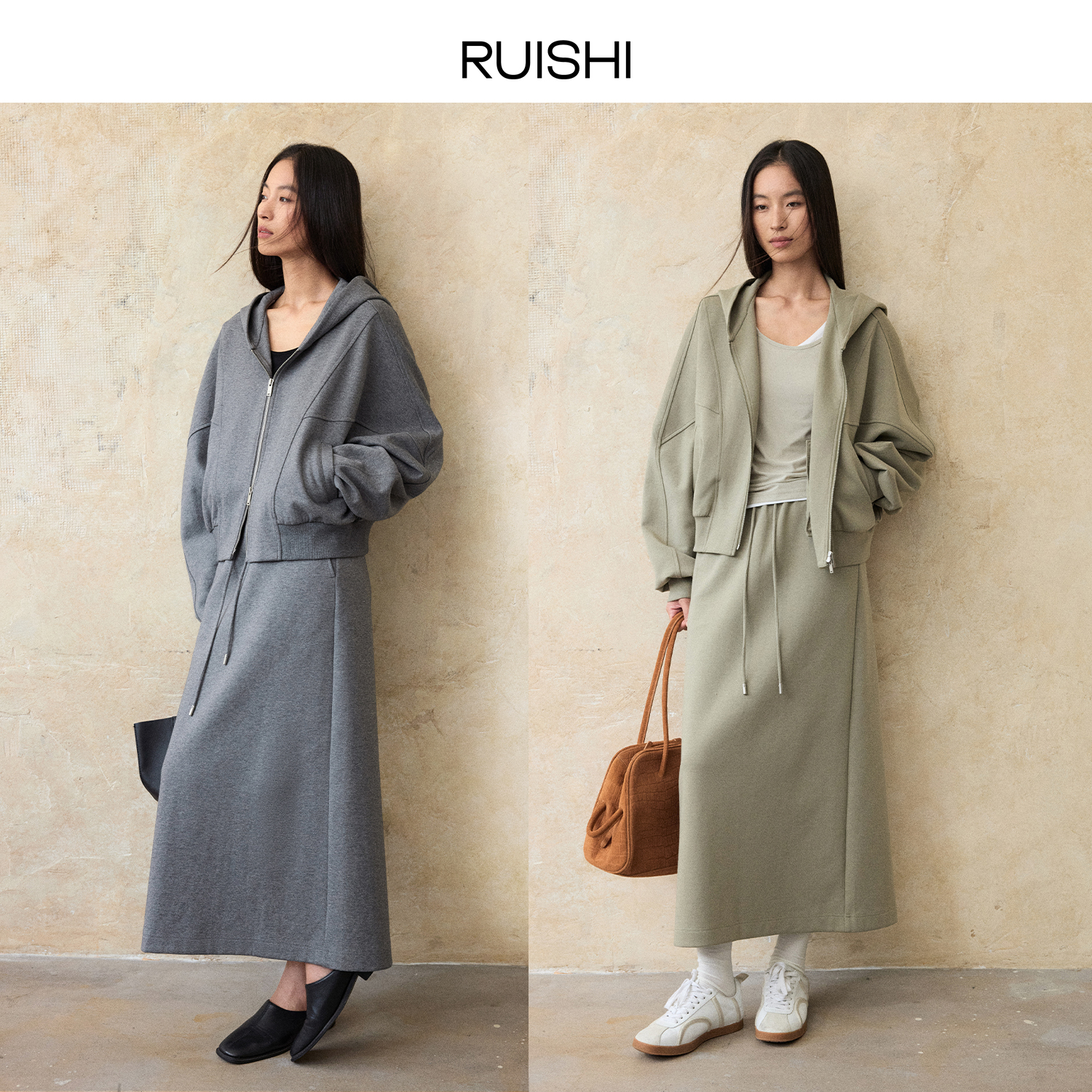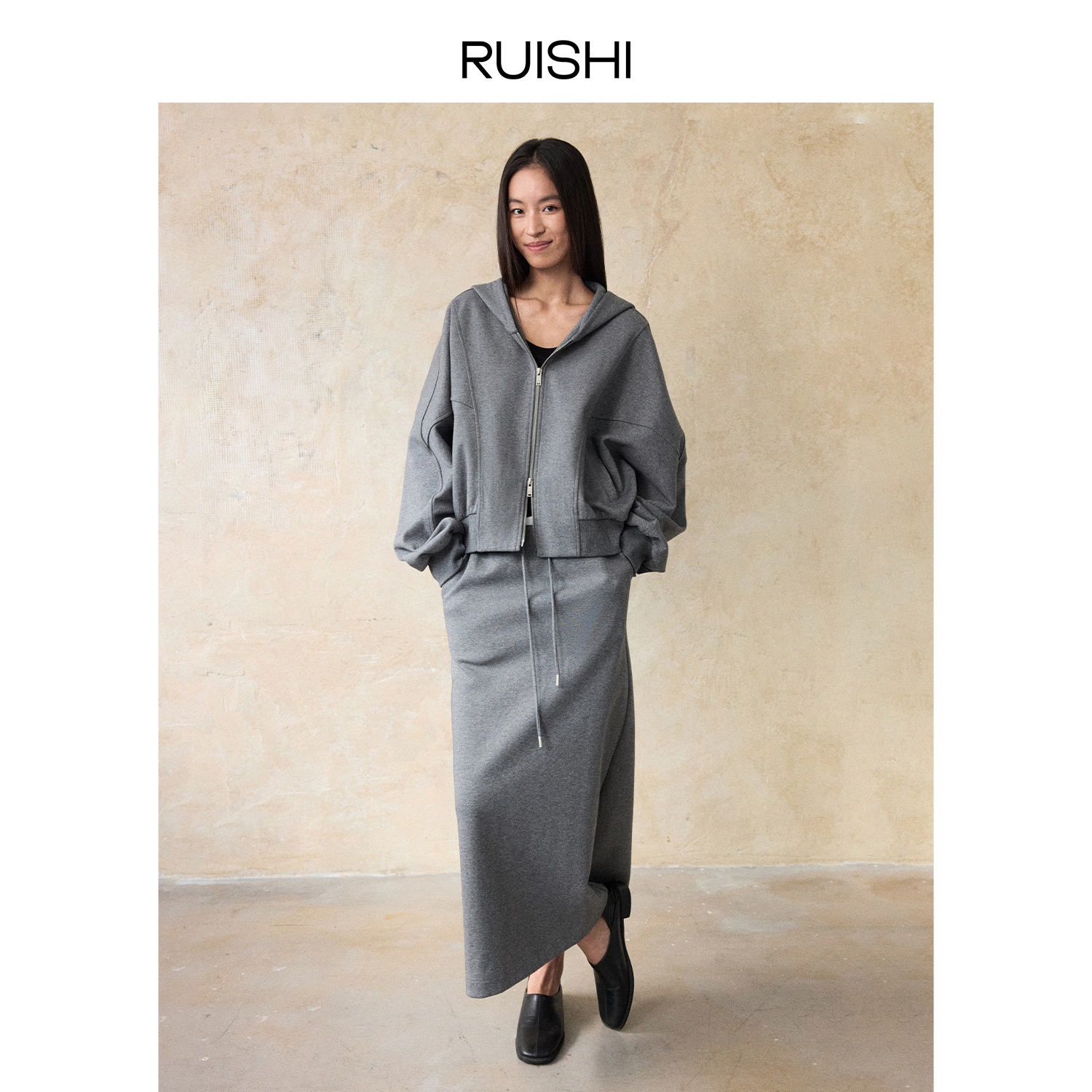 RUISHI芮时 “散步套装”高克重棉连帽卫衣外套半身裙套装女秋季