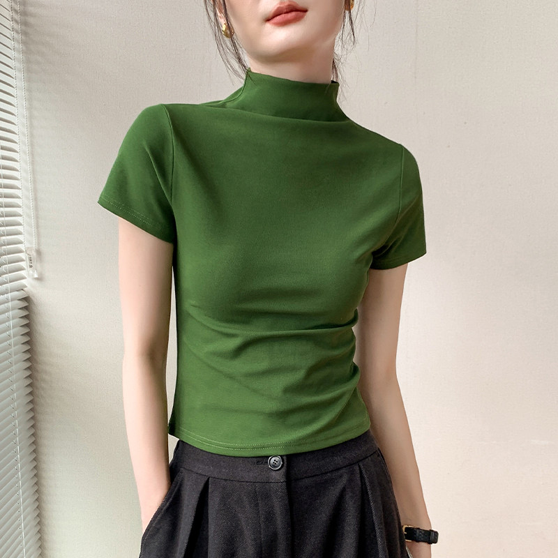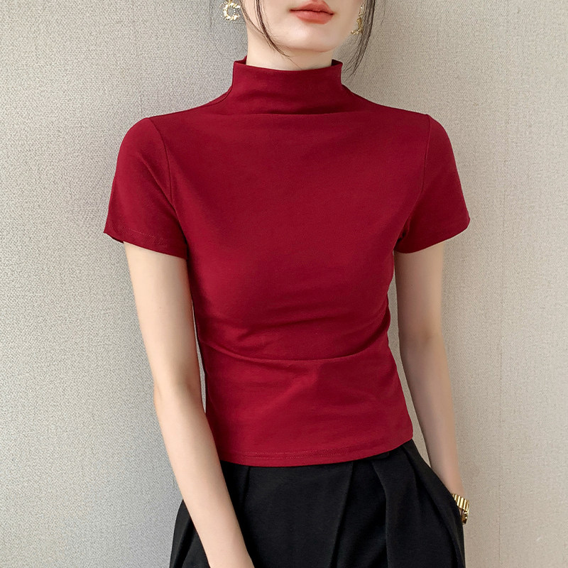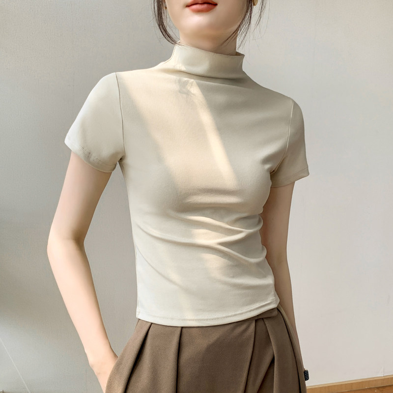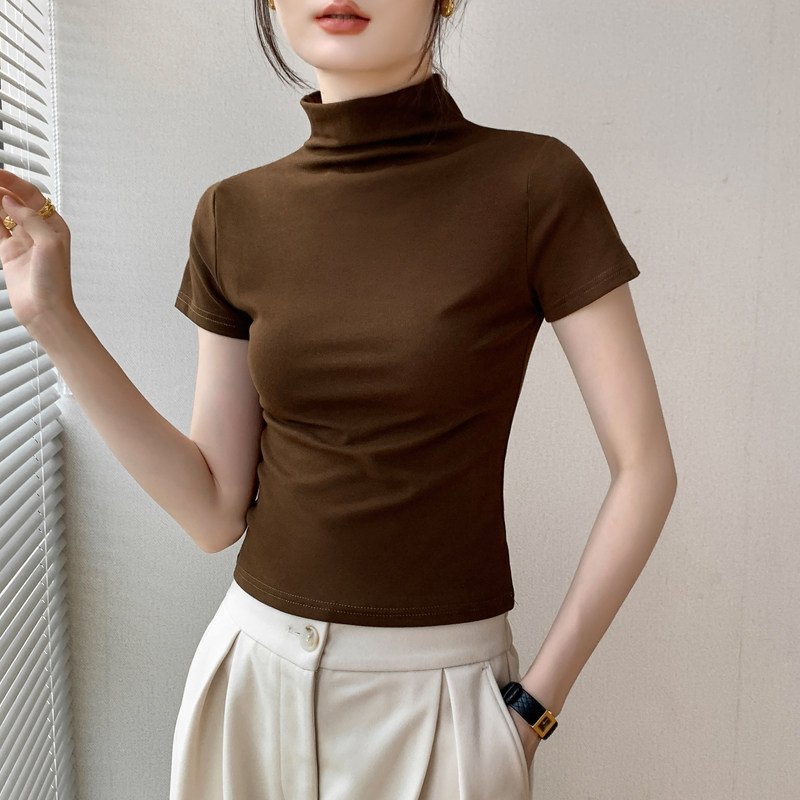 半高领短袖T恤女装2025春夏新款西装内搭修身显瘦纯色百搭打底衫