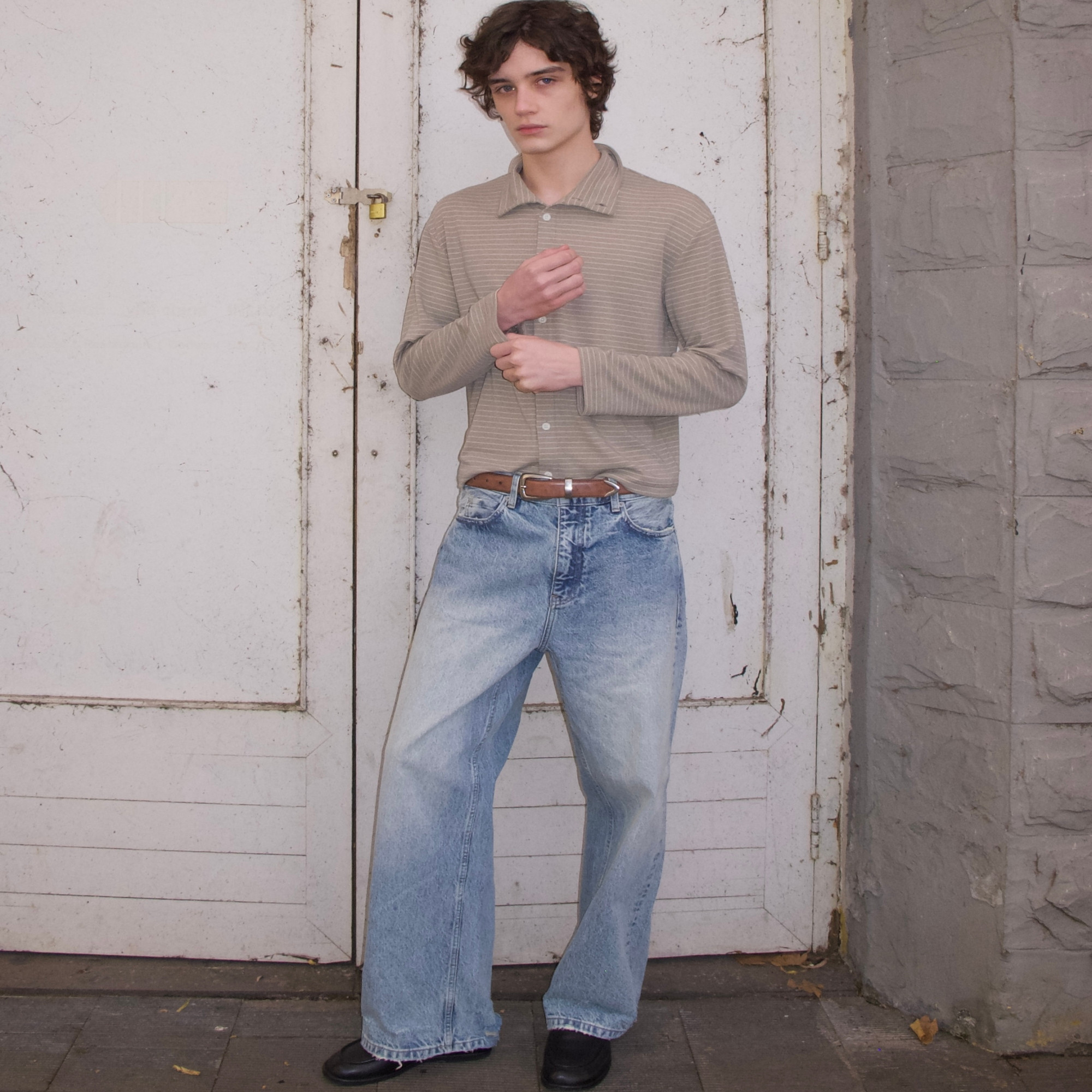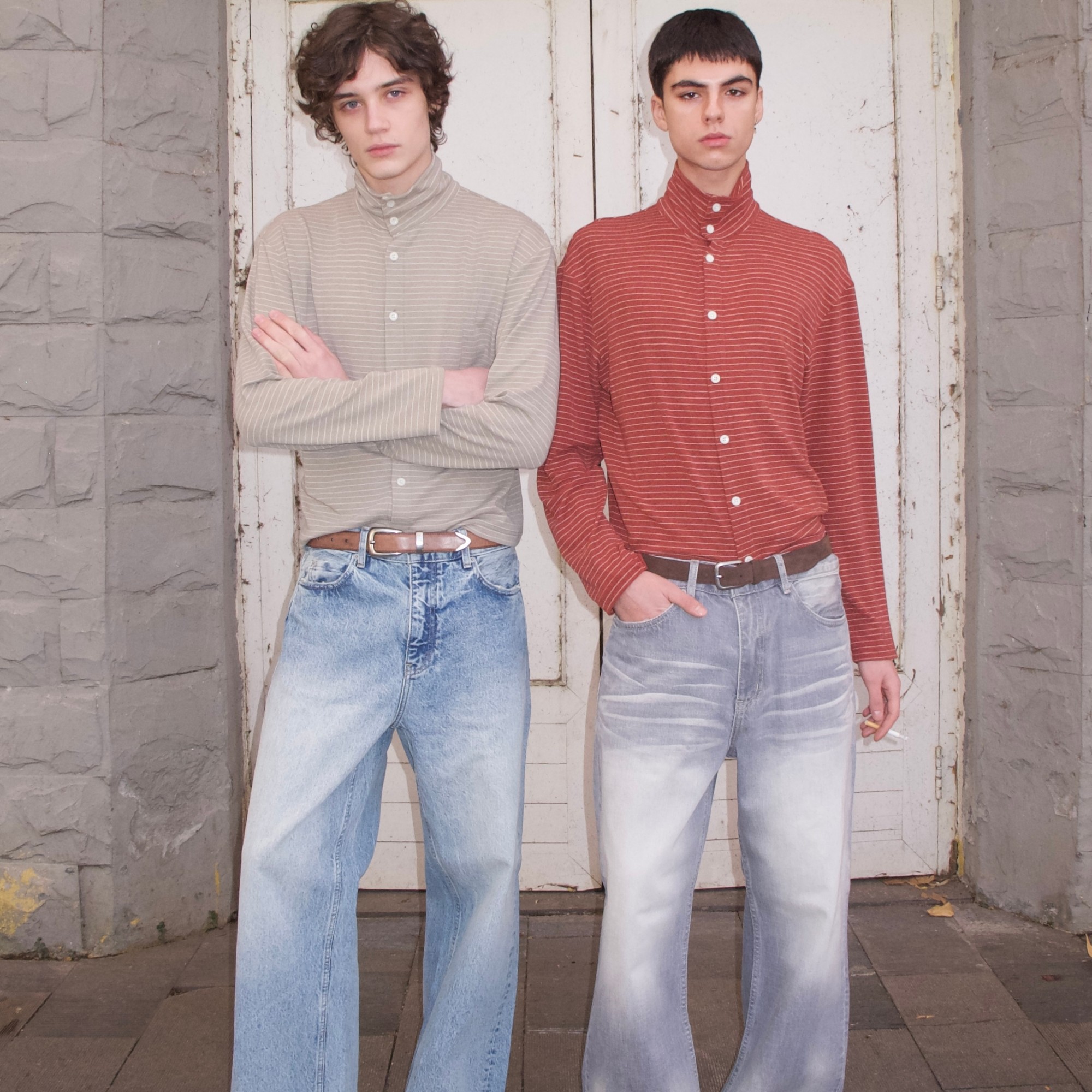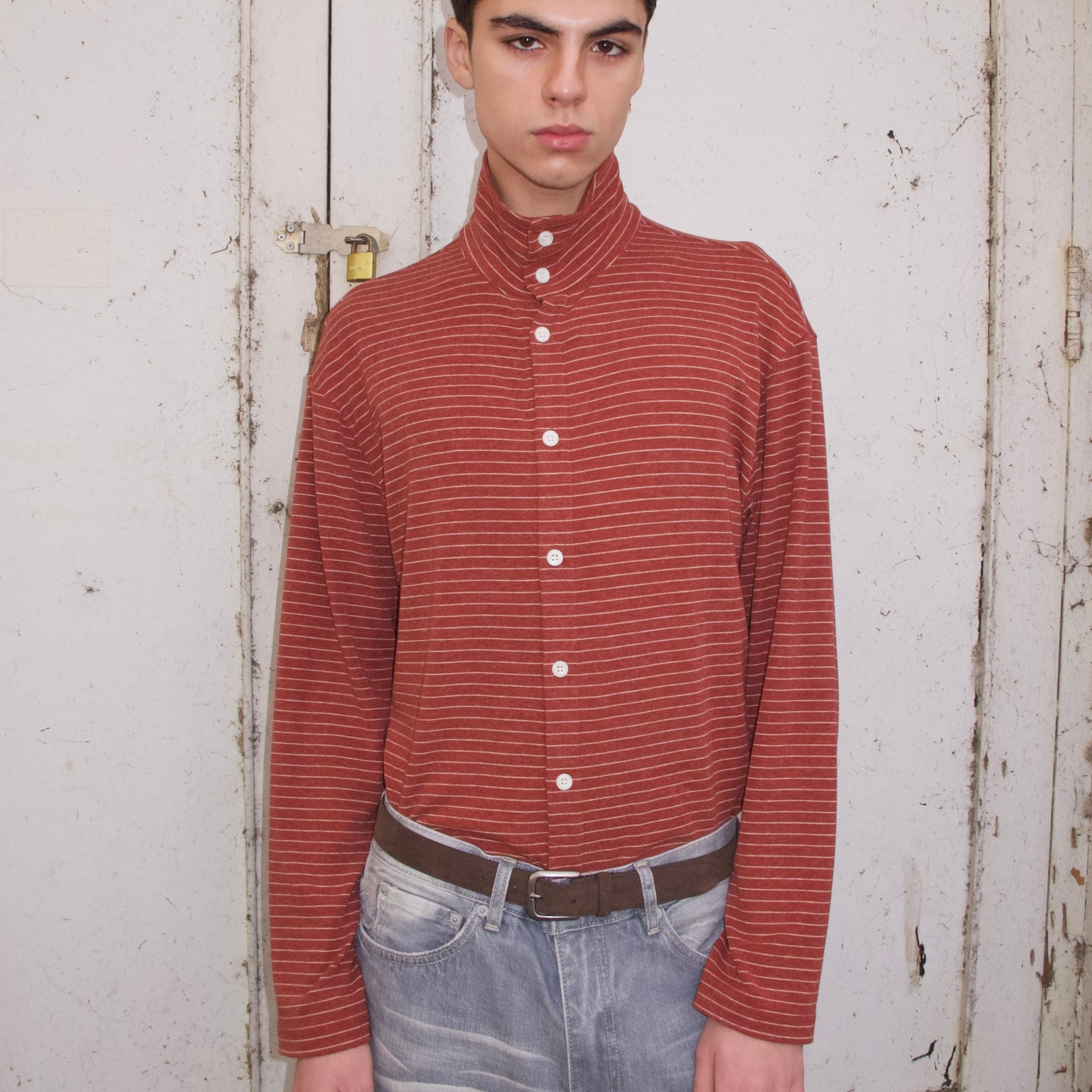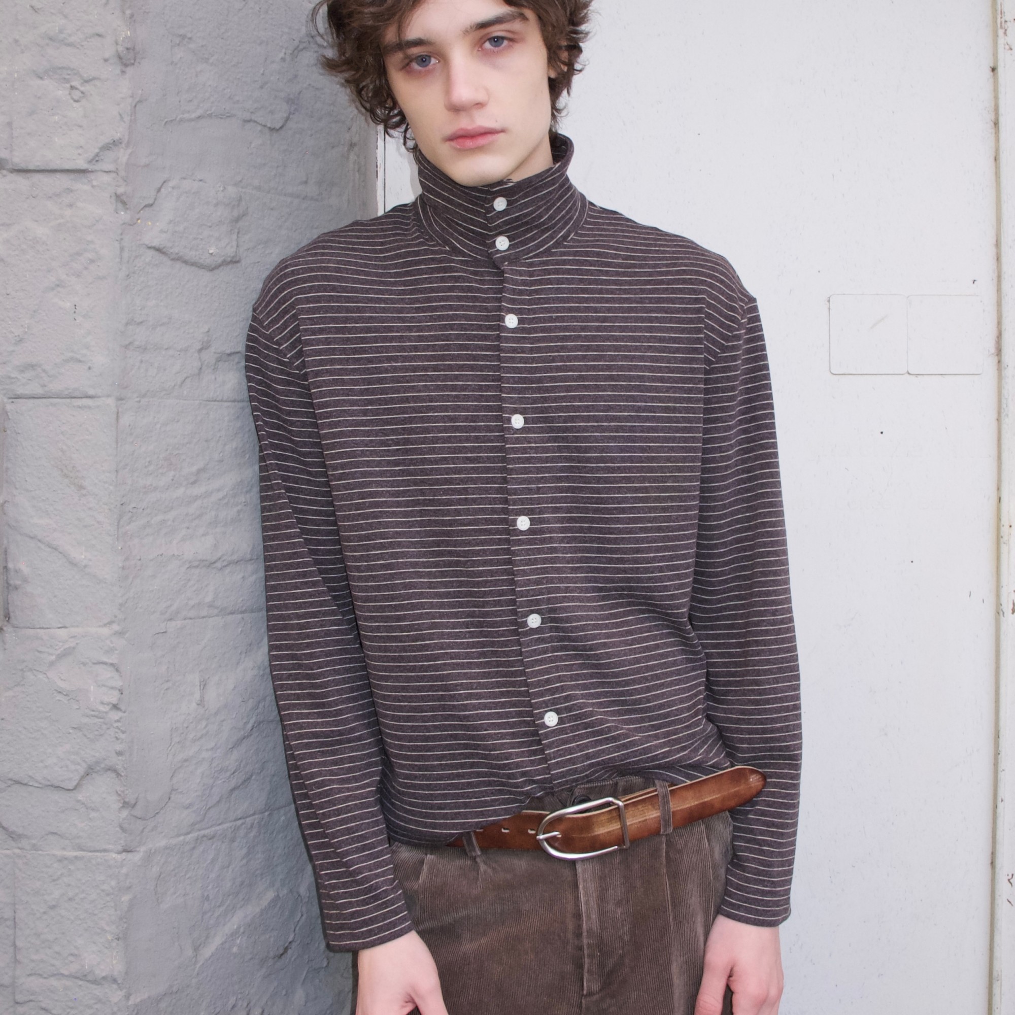 VLABMADE 软糯条纹羊毛莱赛尔混纺*慵懒松弛高领纽扣针织开衫外套