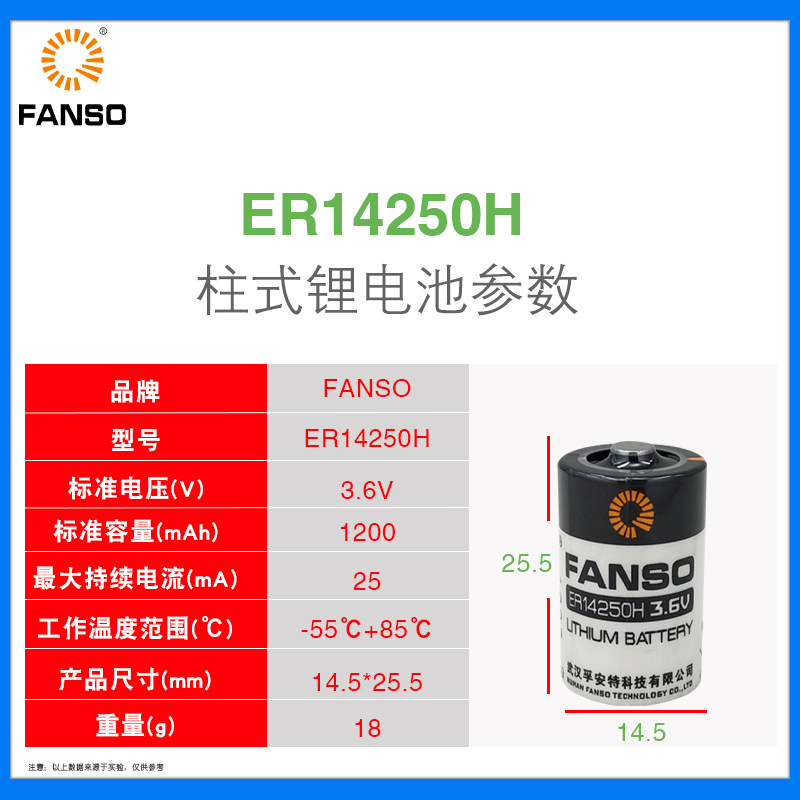 孚安特ER14250H锂电池3.6V 1/2AA台达编程器ETC流量计PLC设备仪表