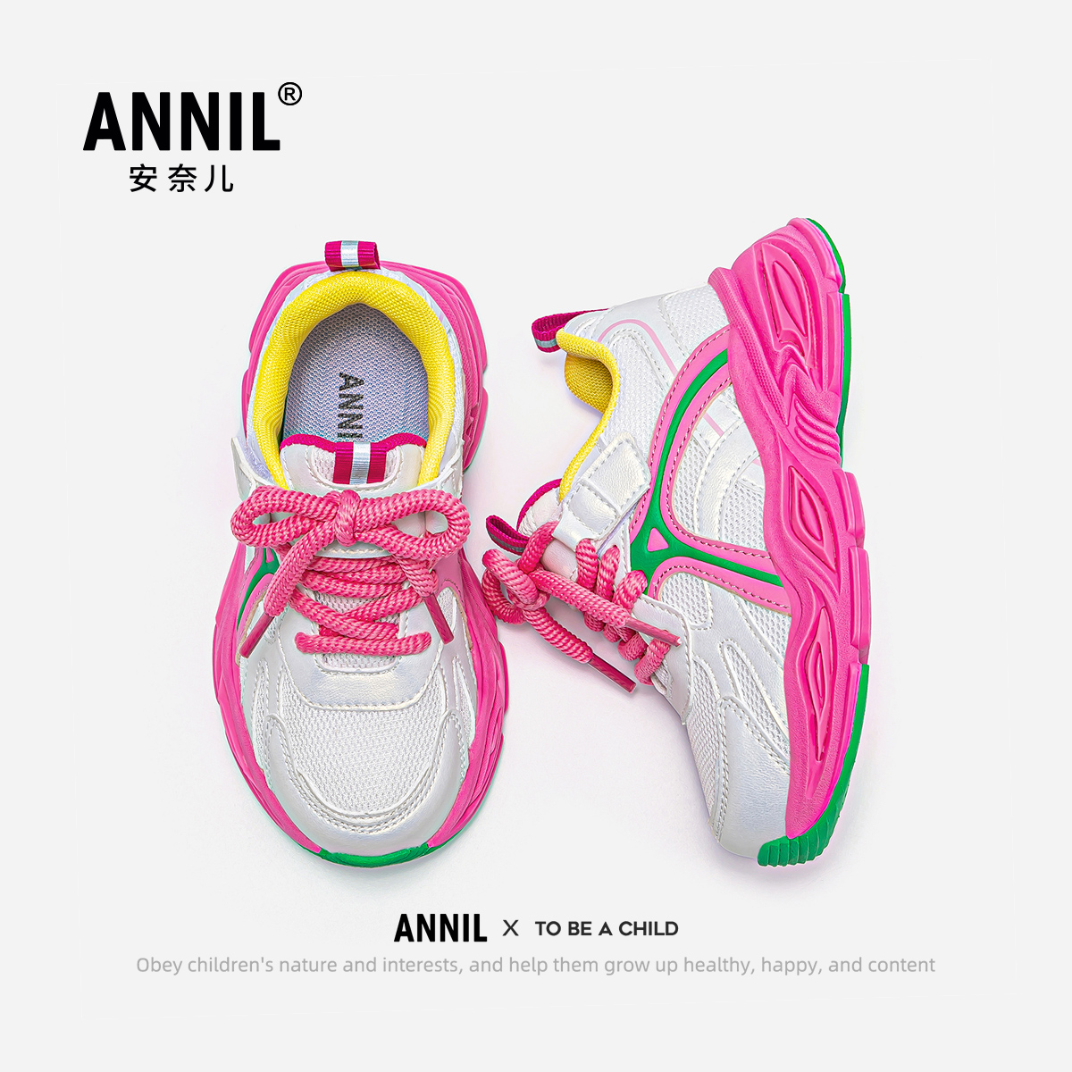 安奈儿女童运动鞋爆款老爹鞋网面