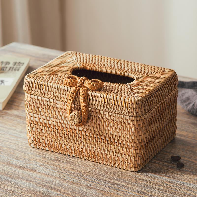 藤编纸巾盒创意手工卫生纸盒家用餐巾纸盒客厅抽取式卫生纸收纳盒