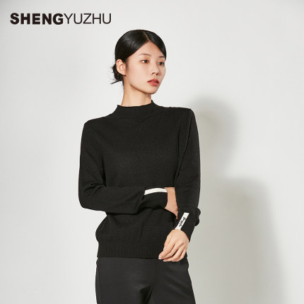 声雨竹官方旗舰店秋冬新款针织衫女长袖套头纯色圆领毛衣气质休闲