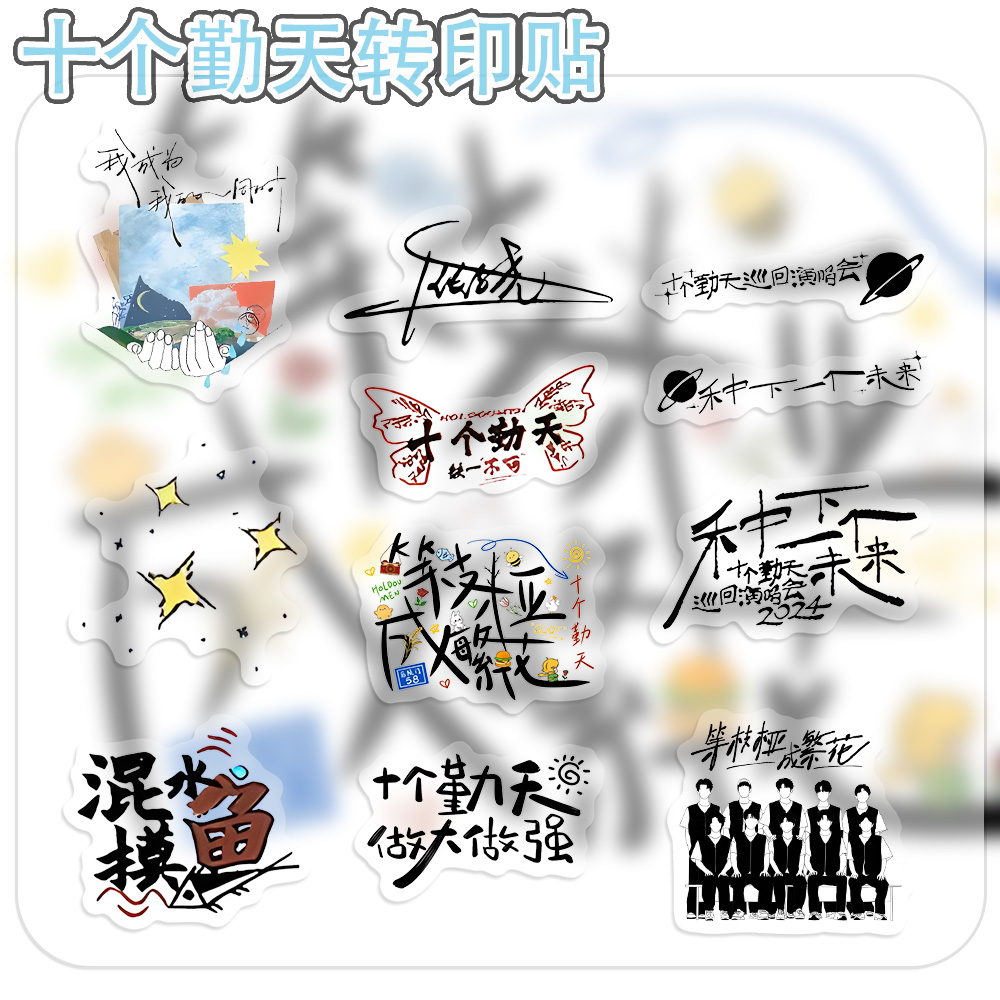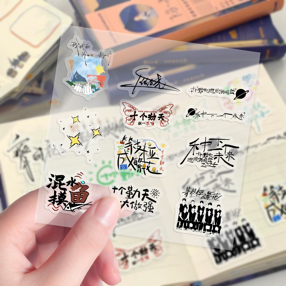 十个勤天透明款pvc转印贴3D立体镂空禾伙人文字周边应援物料贴纸