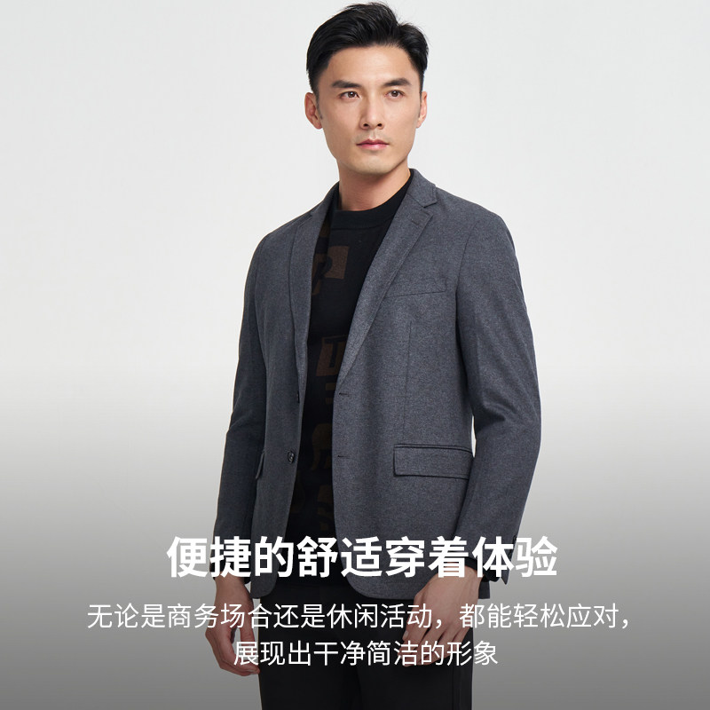 才子休闲西服男2024秋冬品牌修身加厚中年商务羊毛呢黑色西装外套