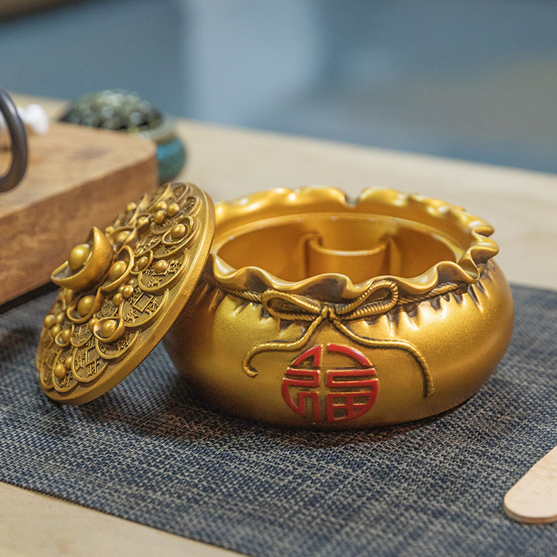 有盖家用烟灰缸客厅茶几办公室茶桌装饰小摆件防飞尘防风中式烟缸