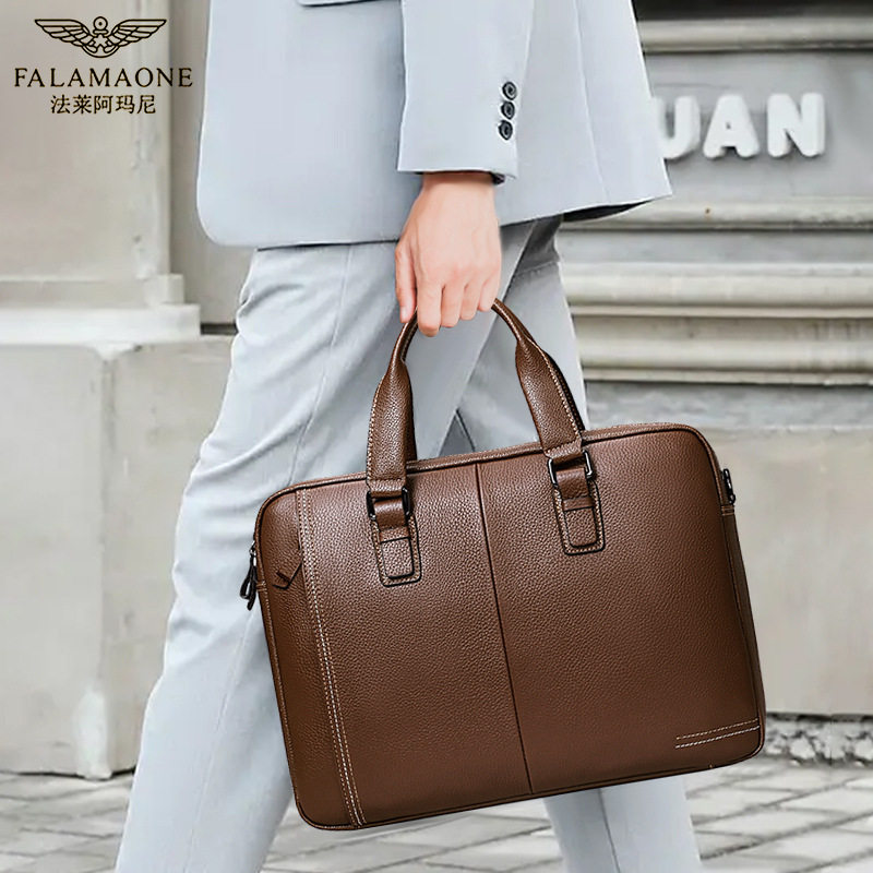 法莱阿玛尼正品牛皮男士单肩斜挎包手提真皮商务公文电脑包包办公