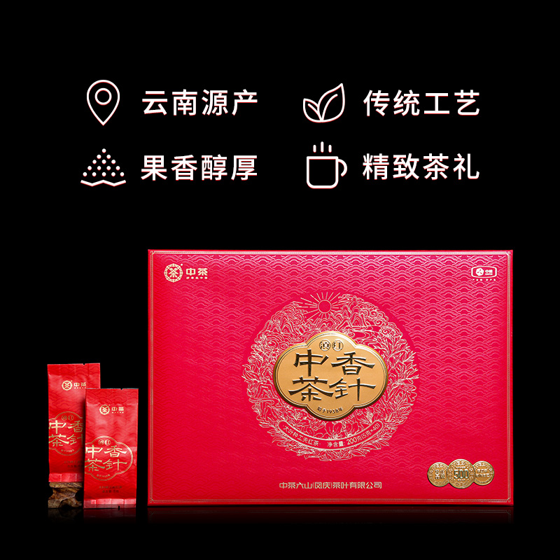 中茶茶叶 滇红香针大叶种工夫红茶礼盒装 200g送礼茶叶礼盒装茶礼
