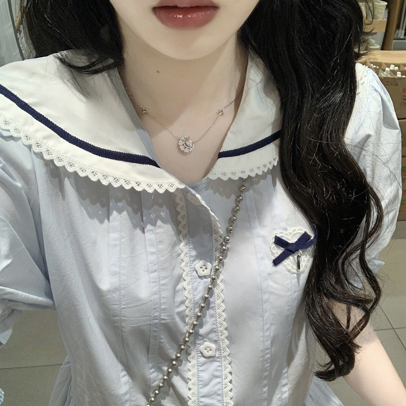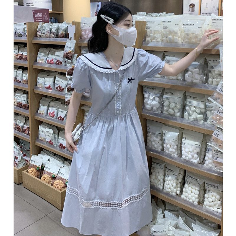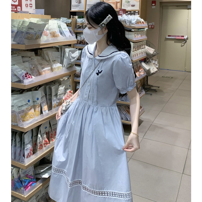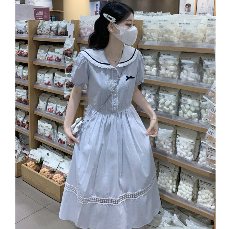 少女学院风洋气娃娃领收腰连衣裙2025夏装初高中学生泡泡袖A字裙