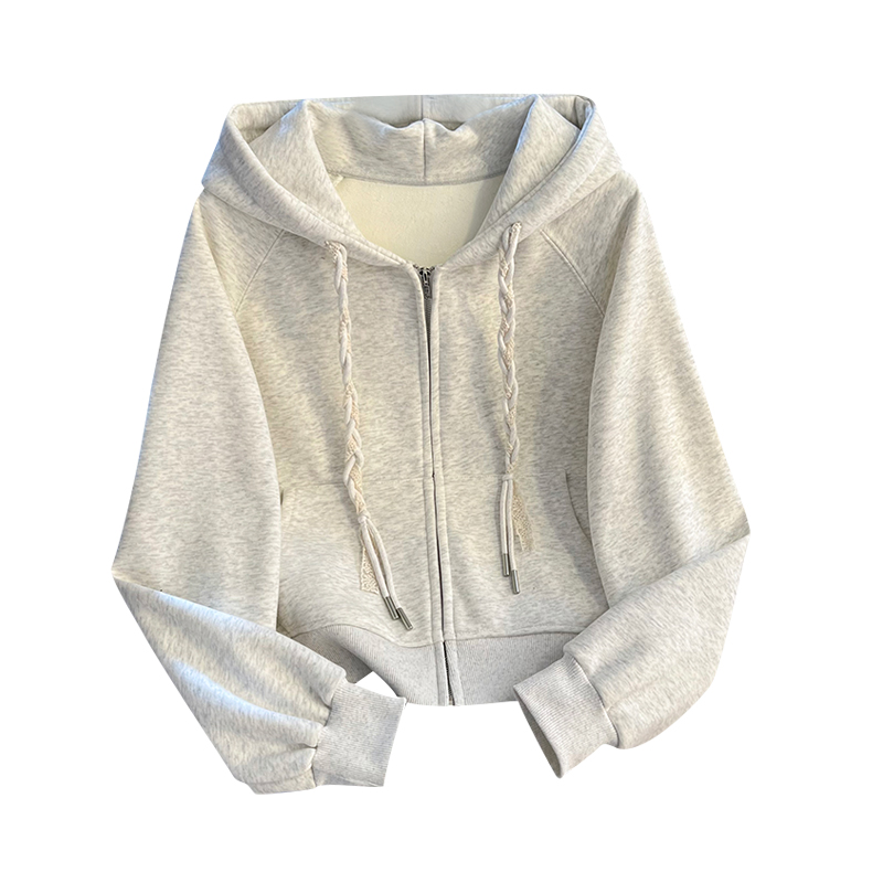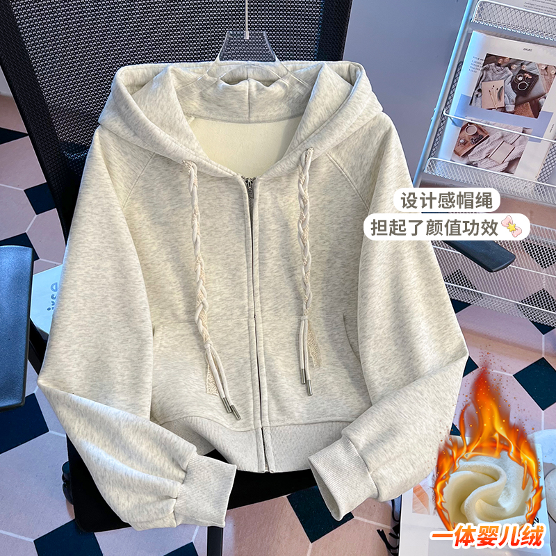初中生休闲加绒加厚卫衣女小个子高中学生时尚简约连帽开衫外套冬