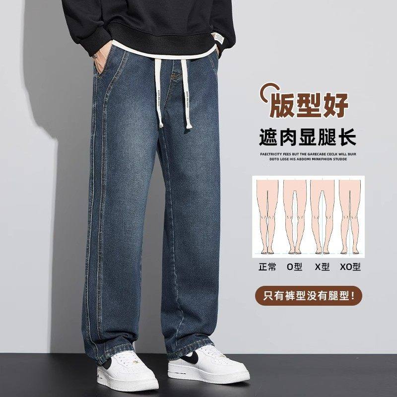 Yishion以纯美式复古牛仔裤男士宽松直筒休闲长裤秋季男款潮牌阔