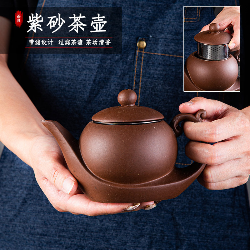 宜兴紫砂壶不锈钢过滤网泡茶壶家用单壶大容量功夫茶具茶杯套装