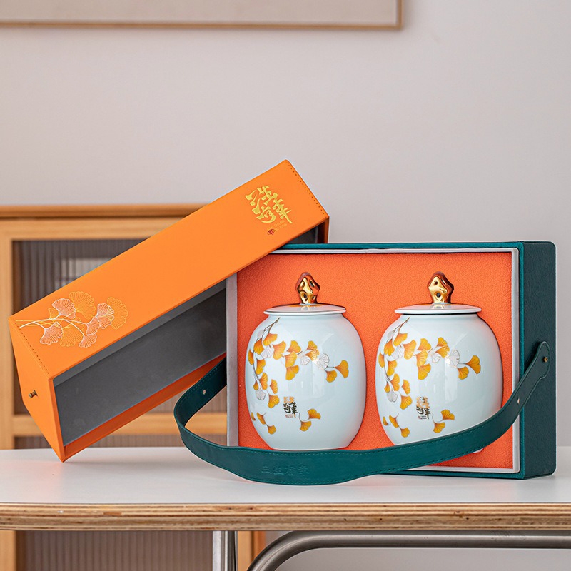 陶瓷高档描金茶叶罐大号密封罐储茶罐红绿茶普洱生普礼盒包装空盒