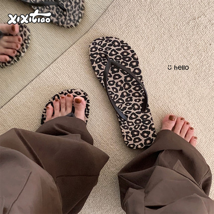 细细条 沙滩度假人字拖女ins欧美风豹纹夏网红外穿夹脚洗澡凉拖鞋
