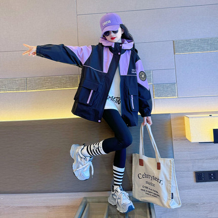 法国BADNUT女童冲锋衣春秋2025新款儿童超好看大童三合一外套