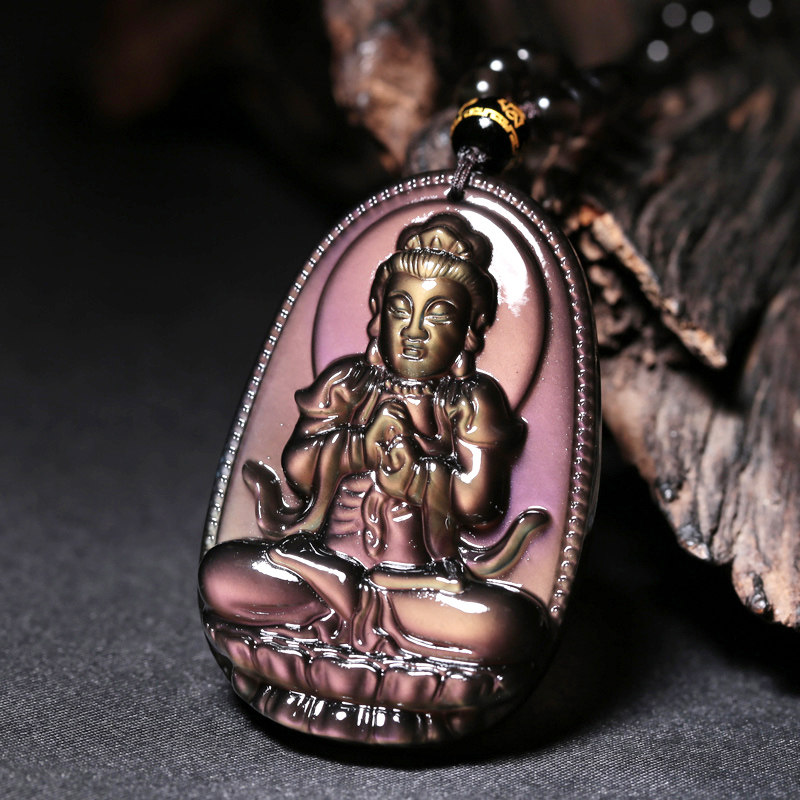 金红眼冰种黑曜石大日如来生肖守护神吊坠属羊猴本命佛项链男女