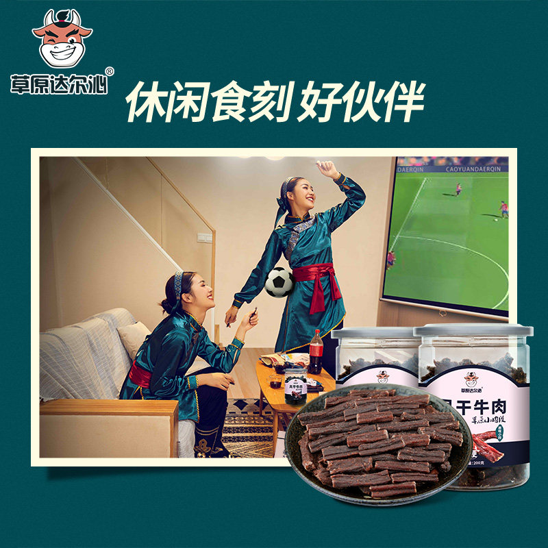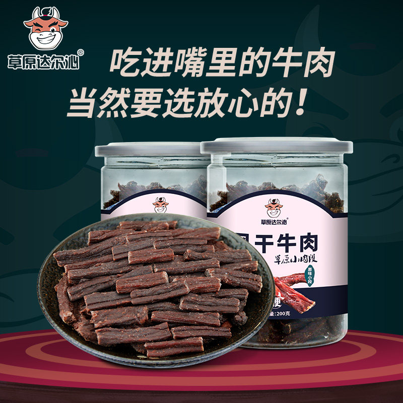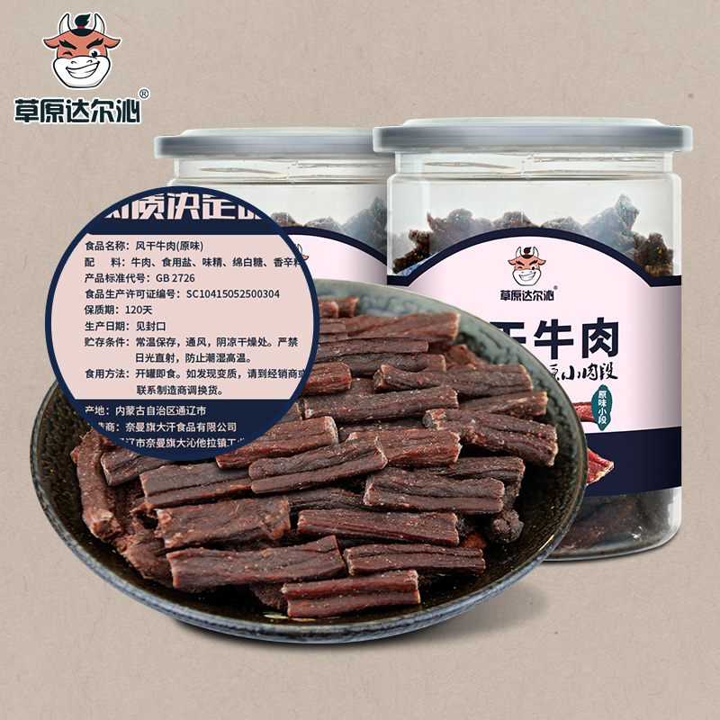 草原达尔沁内蒙古超干风干牛肉干小肉段桶装手撕麻辣正宗特产原味