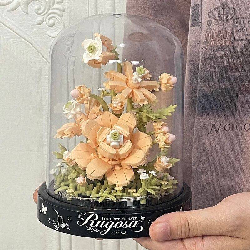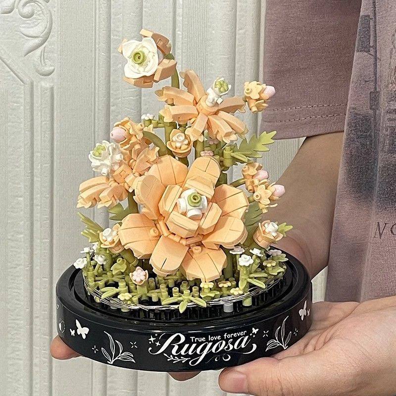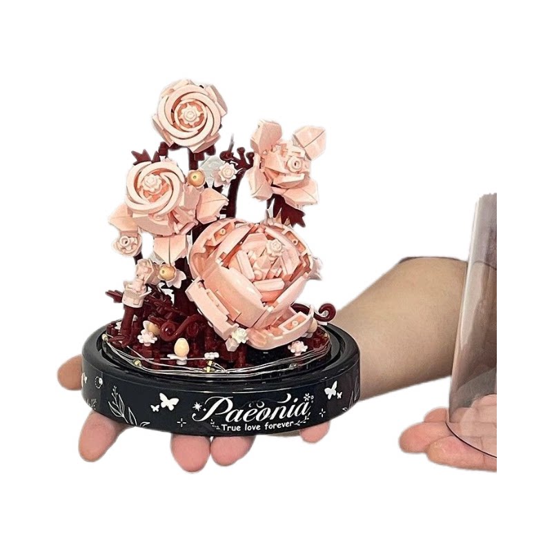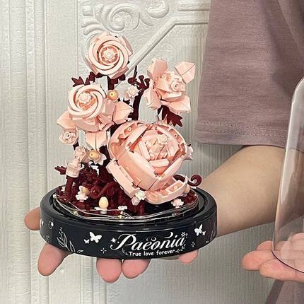 益智新款兼容网红积木拼装香槟玫瑰玩具男女孩系列情人节礼物