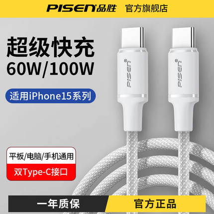 品胜60w双头typec快充数据线PD100Wctoc口适用华为pura70苹果iPhone16promax小米ipad平板电脑15tpyc充电线器