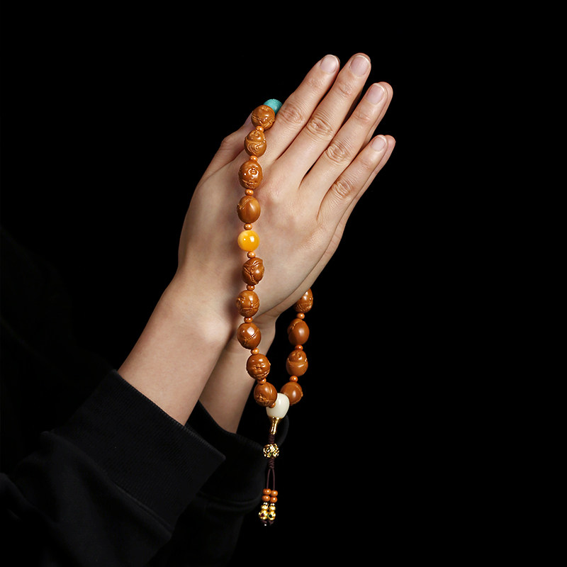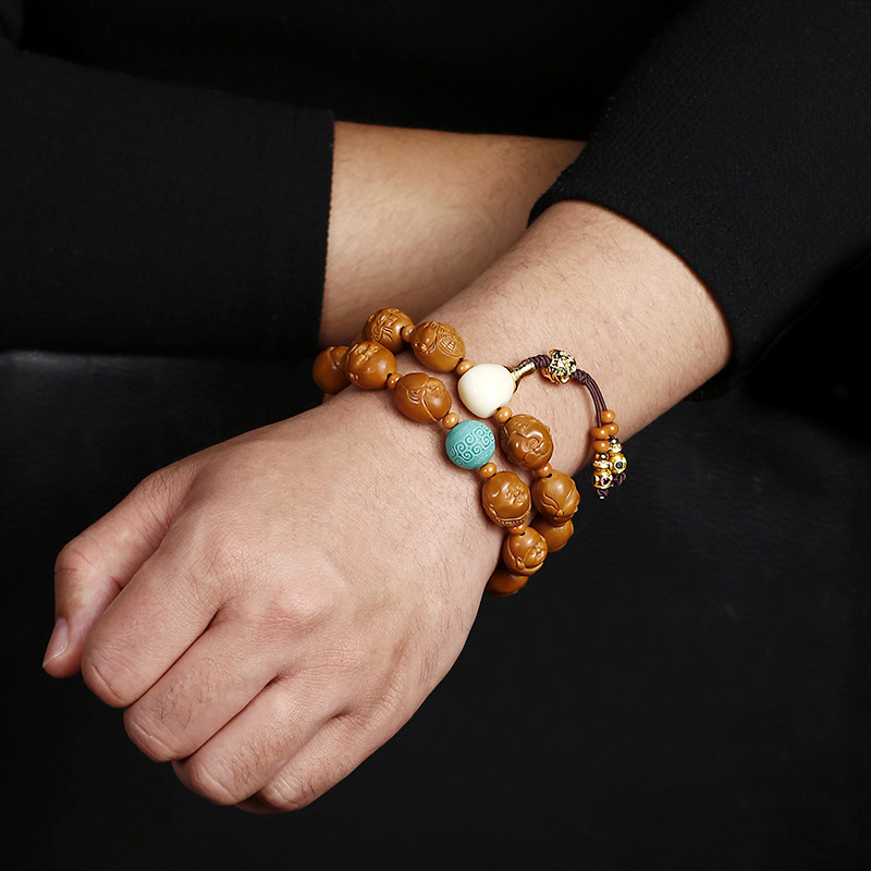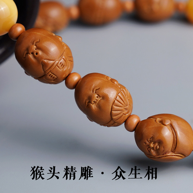 橄榄核手串桃核雕刻文玩猴头十八子天然菩提子盘玩念佛珠手持正品