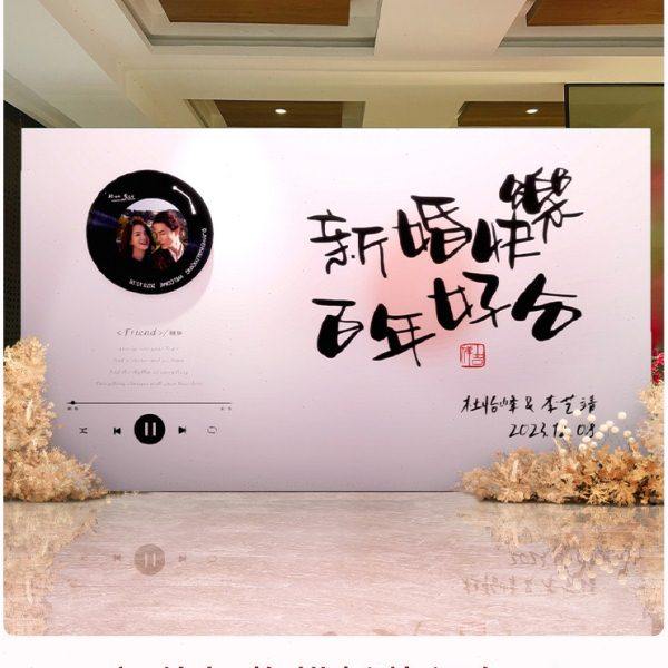 复古唱片机订婚宴布置装饰迎宾结婚留影区求婚kt板定制场景背景墙