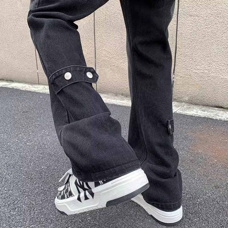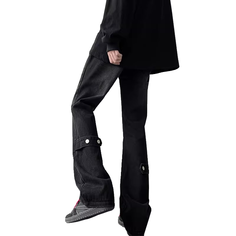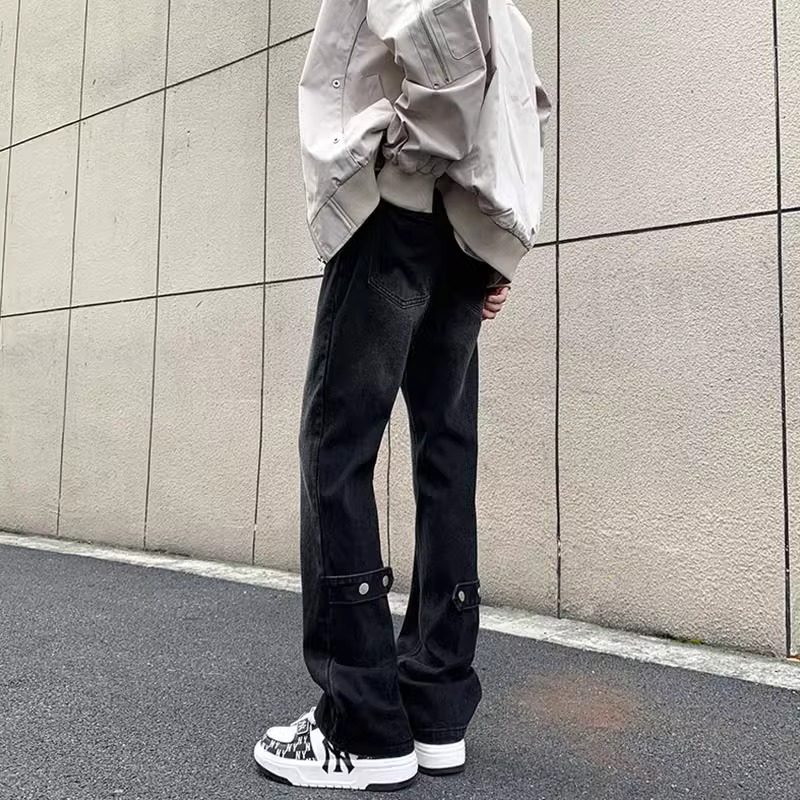 黑色微喇牛仔裤男夏季薄款宽松直筒高街美式vibe裤子潮牌休闲百搭