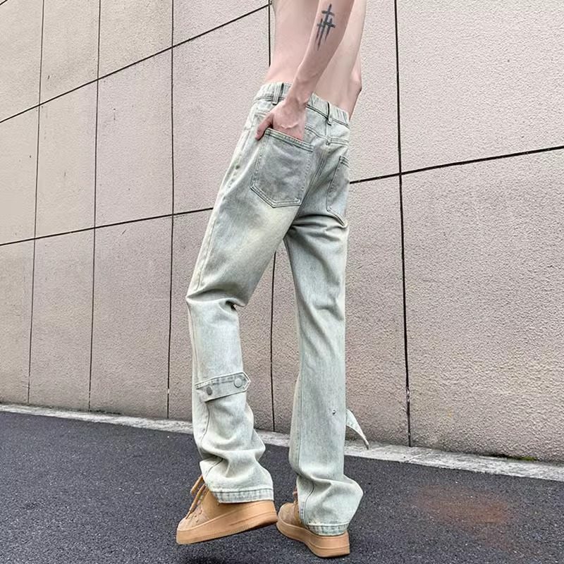 潮标蒂微喇牛仔裤男宽松直筒