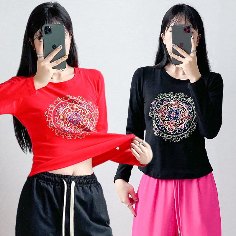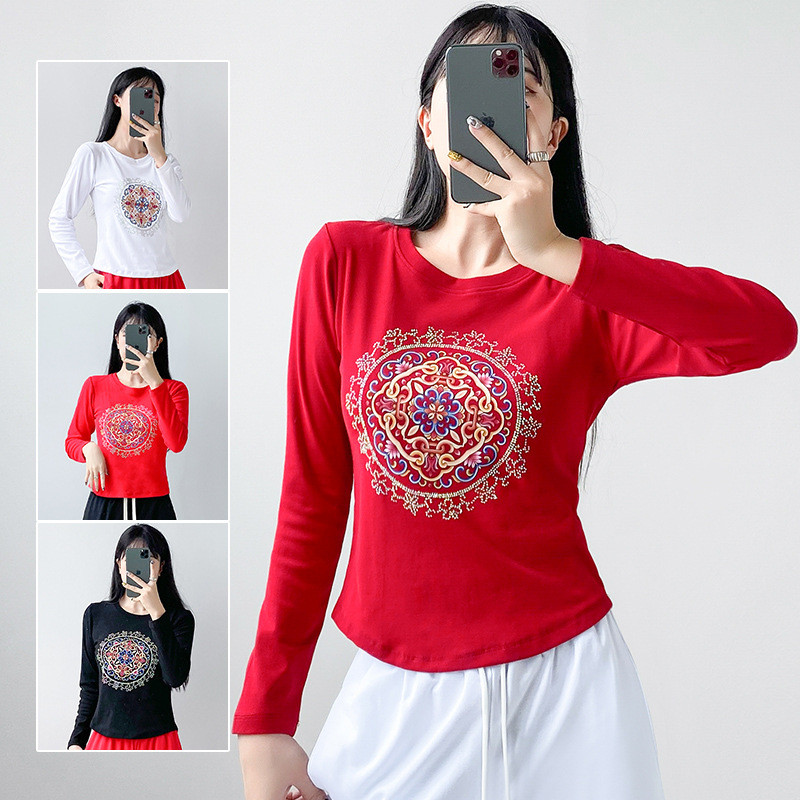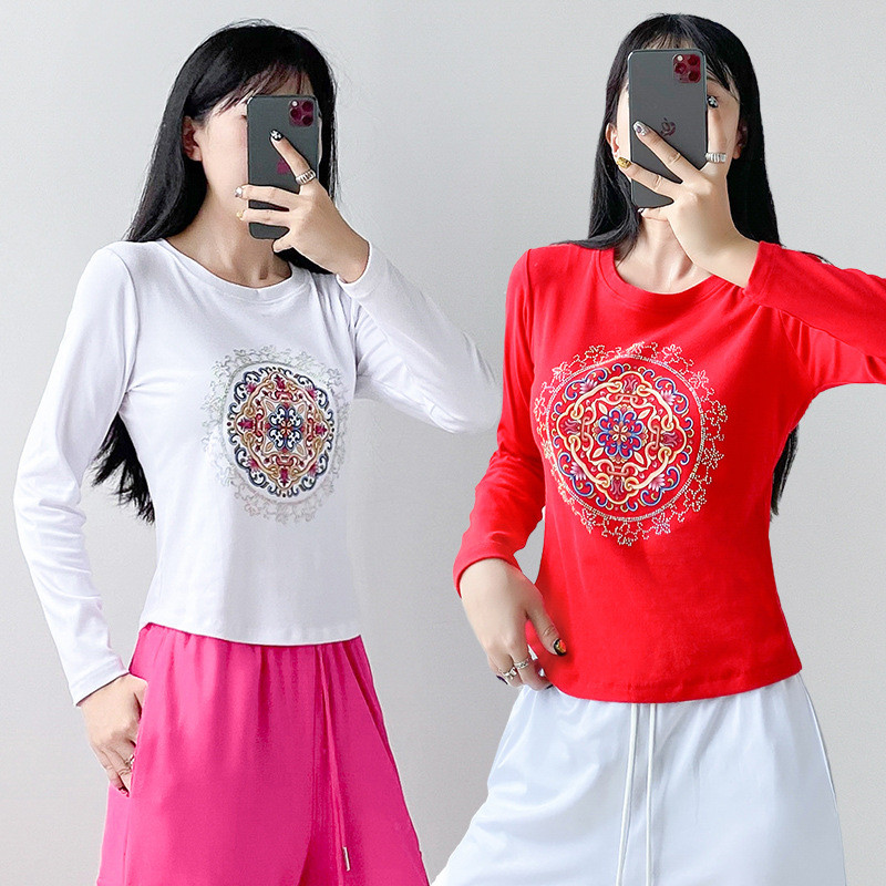 爆卖新款秋季新款长袖上衣女广场舞运动T恤舞蹈服健身跳操跑步休