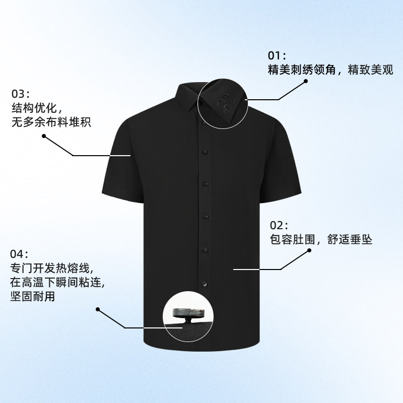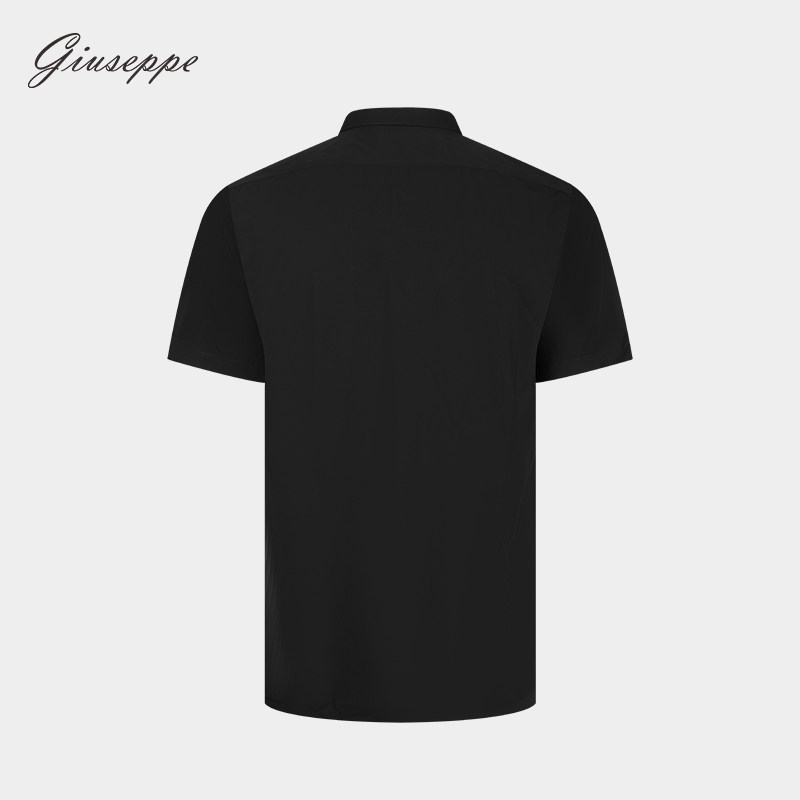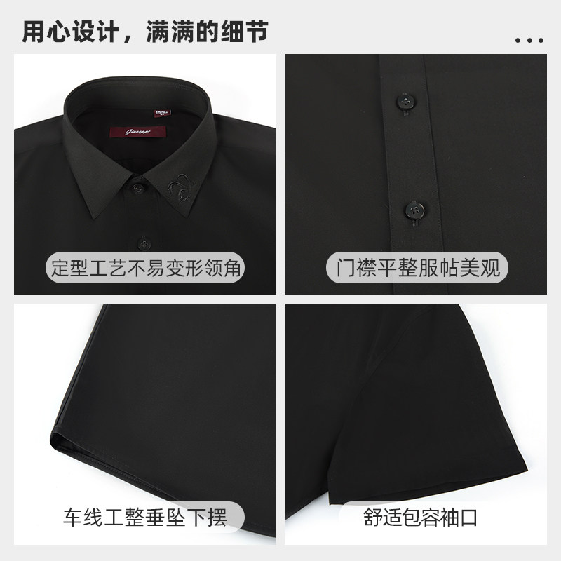 乔治白夏季薄款男士短袖衬衫尖领黑色纯色衬衣休闲修身上衣