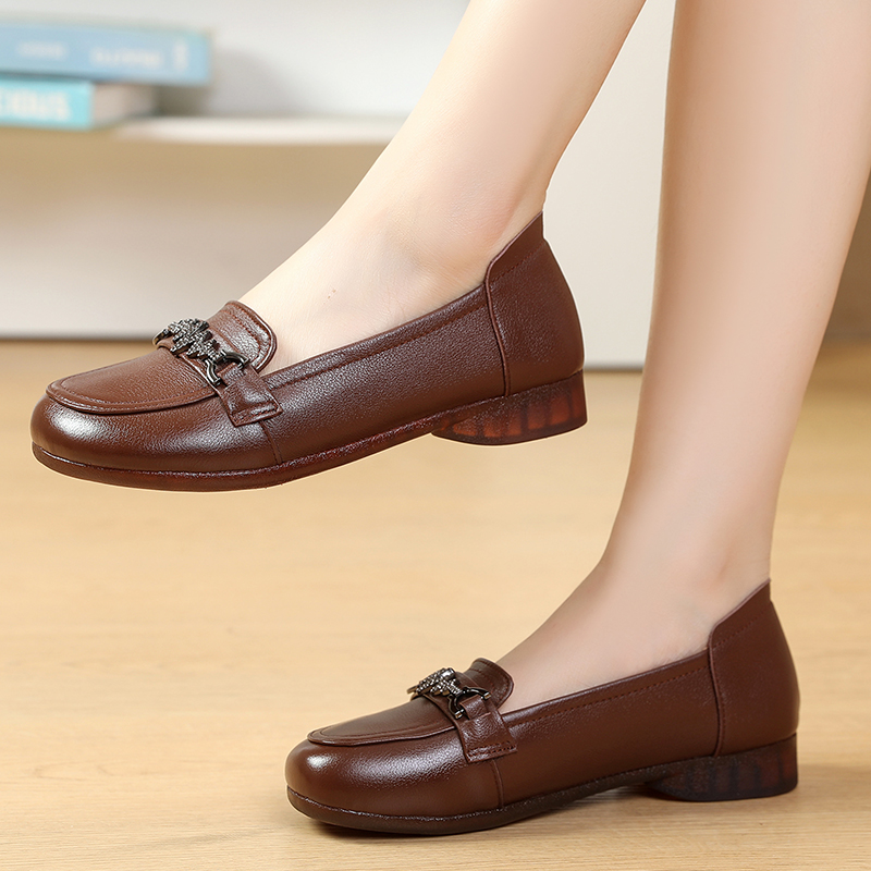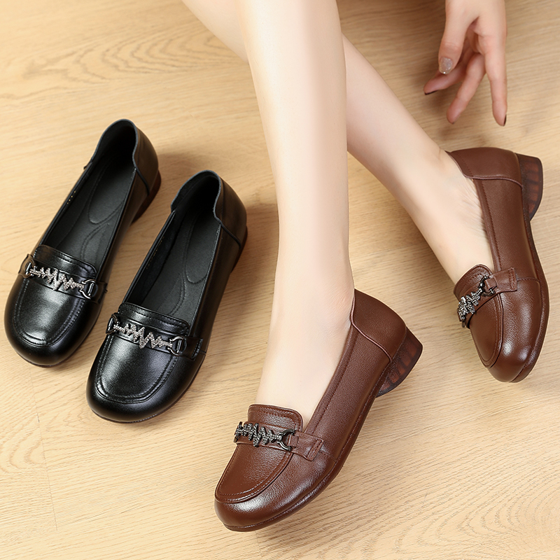 真皮软底妈妈鞋春秋新款中老年女鞋豆豆单鞋一脚蹬乐福鞋大码皮鞋